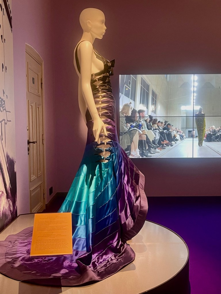 Muodin huipulla -näyttelyssä nähdään maineikkaiden suunnittelijoiden ja muotitalojen upeita luomuksia, jotka heijastavat muodin mailman muutoksia.”