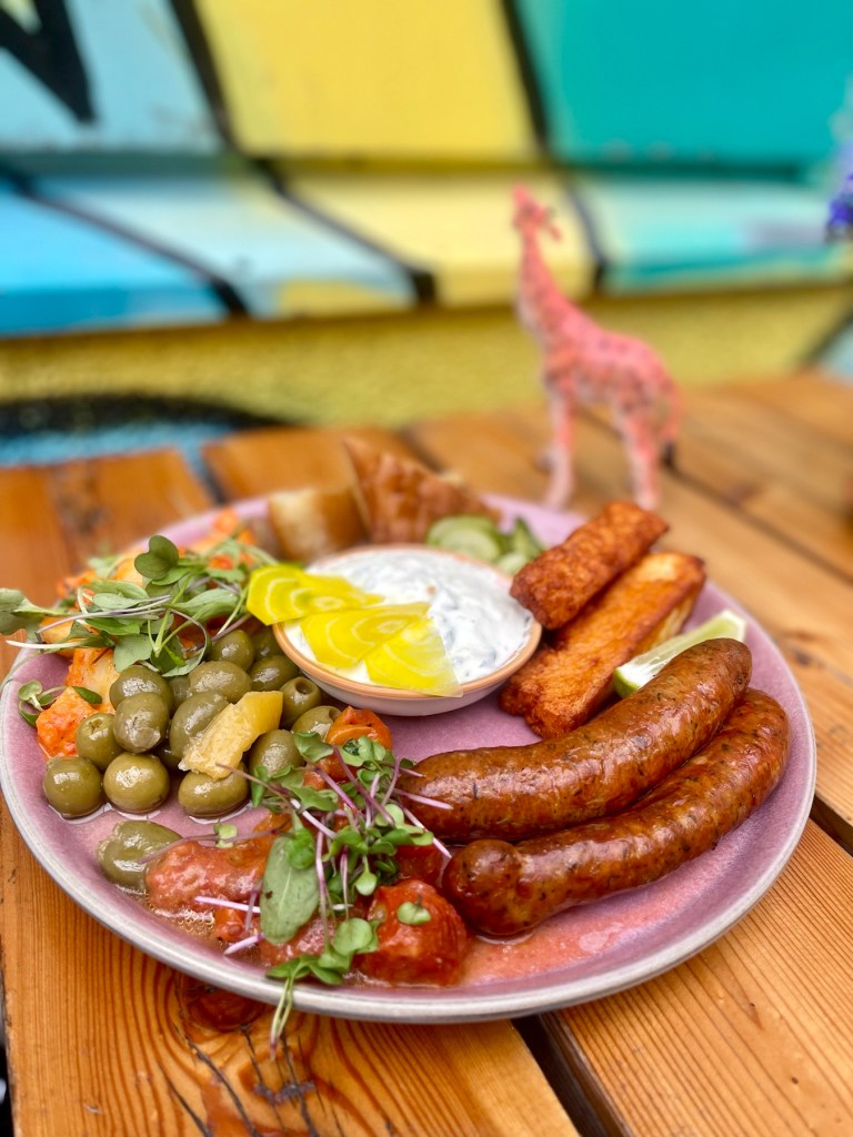 Puutarhassa tarjolla oleva Ravintola Muusan menu on yhdistelmä rentoja herkkuja ja värikkäitä pääruokia. Unelmaravintola myös kasvissyöjille! Minulla iski paha annoskateus Kaisan munakoisoannokseen.