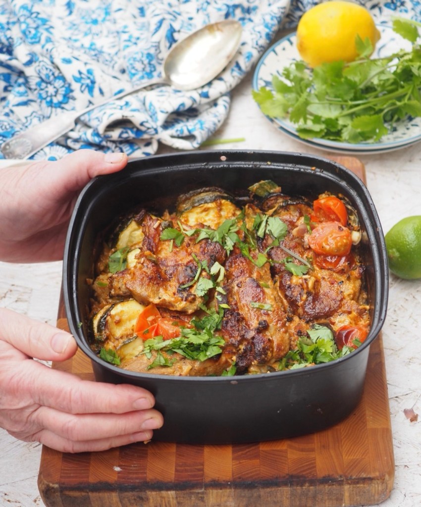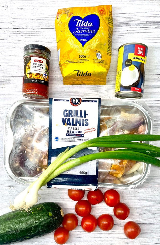 Muistan lapsuudestani äitini valmistaman viikonloppuruoan, jossa possunkyljykset kypsyivät tomaattiriisin joukossa uunissa. Siitä se ajatus sitten lähti… Ruoka syntyi niistä aineksista, joita kaapeistani löytyi.