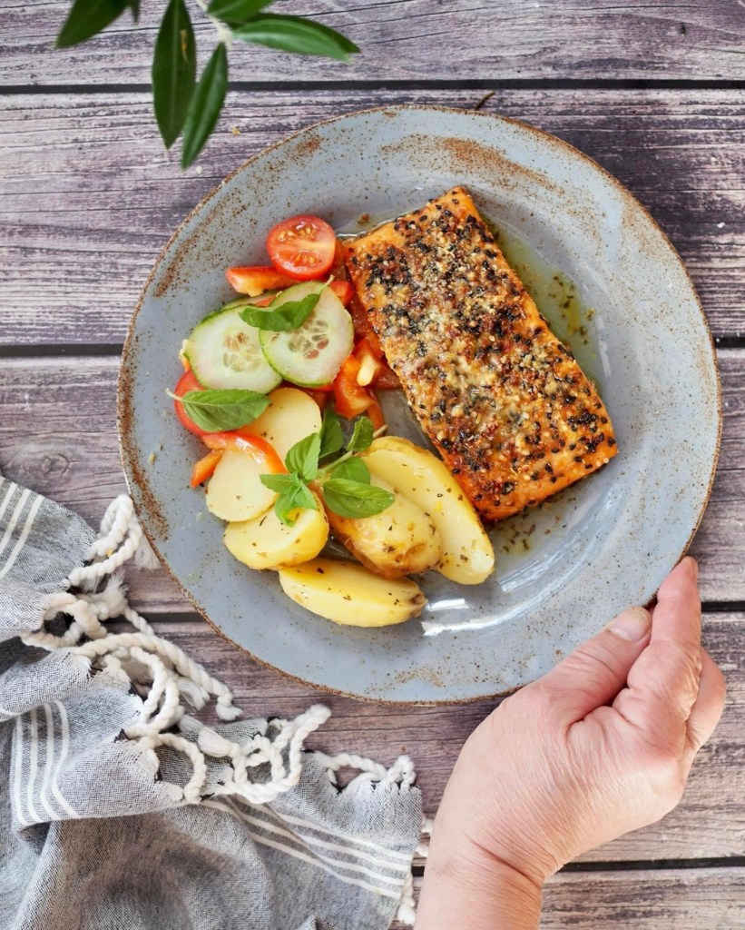Airfryerissa valmistettu rapea ja makeansuolainen lohi on koukuttavan hyvää. Ruoka valmistuu alle puolen tunnin.