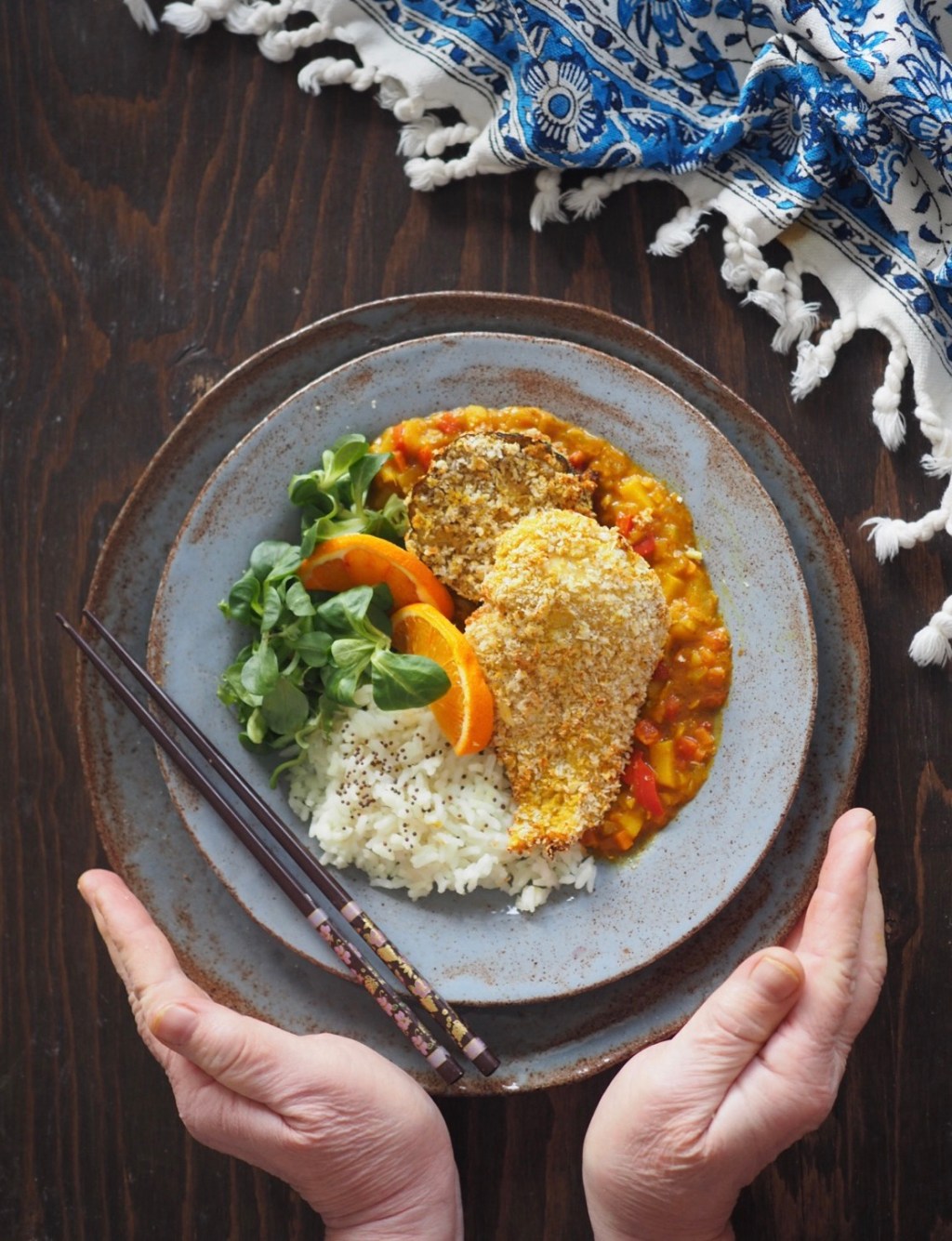 Katsucurry puolestaan on leivitetty kananfilee, joka tarjoillaan makean currykastikkeen kanssa. Kastike saa makunsa mm. garam masala -maustesekoituksesta.