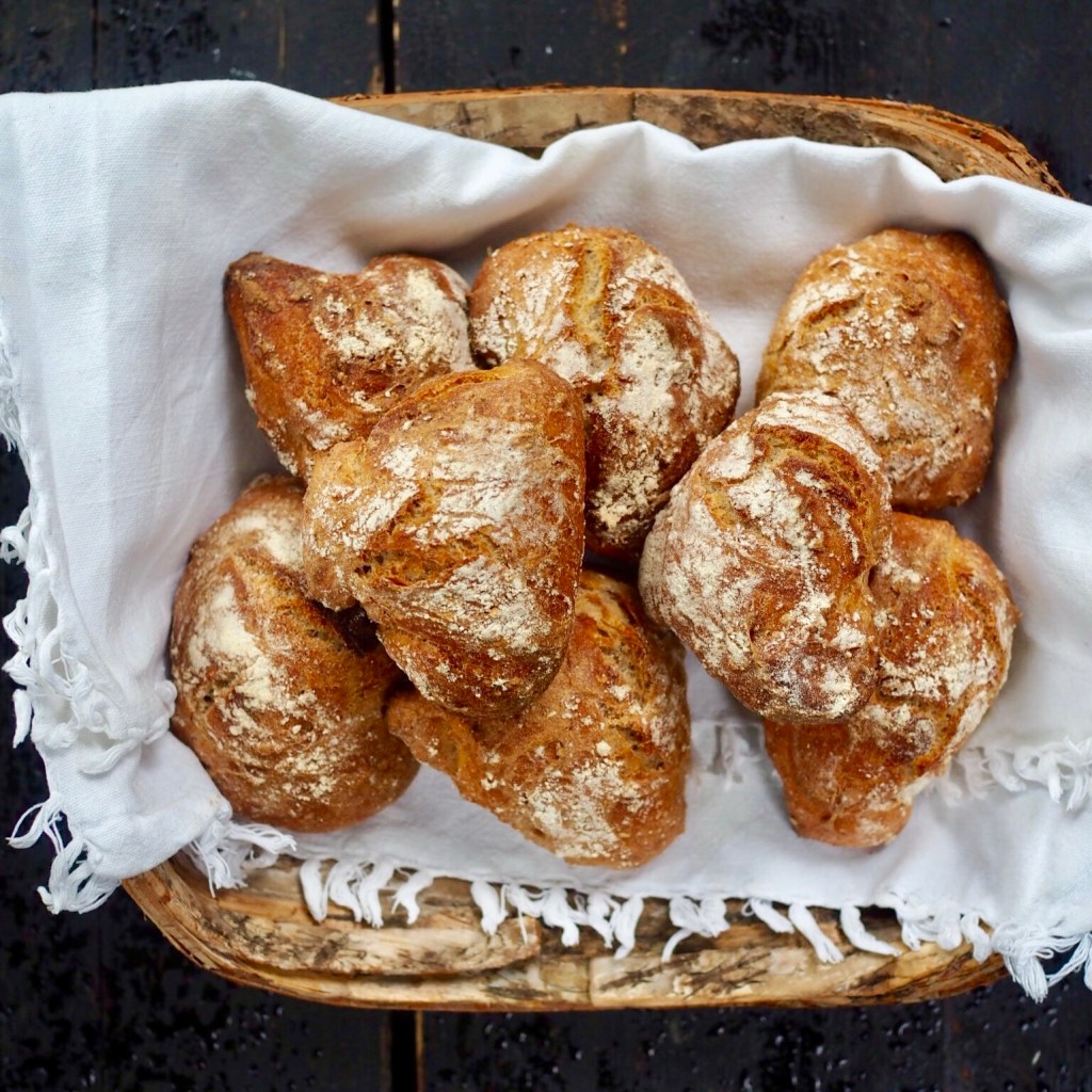 Yön yli kohonnut taikina on ihanasti hieman hapan, ja sämpylät säilyvätkin tuoreena pidempään. Ruisleipäaineksissa on hapanleivänjuurta, joten myös jauhot antavat taikinaan mukavaa happamuutta.