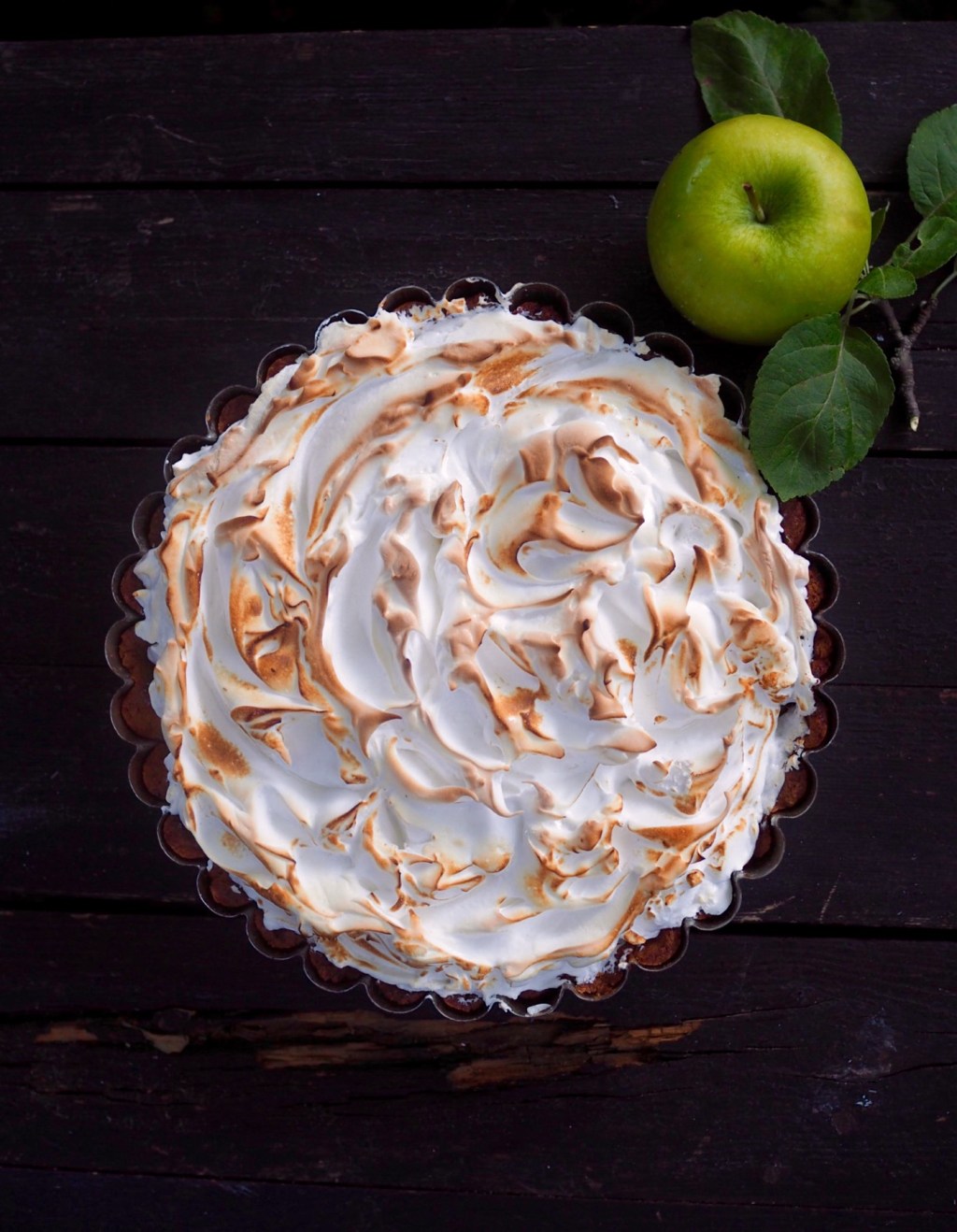 Pursota tai levitä omenatäytteen pinnalle marenki ja jatka paistamista 225 asteessa, kunnes marenki on saanut kauniin värin pintaan. Voit myös käyttää kaasupoltinta marengin ruskistamiseen.