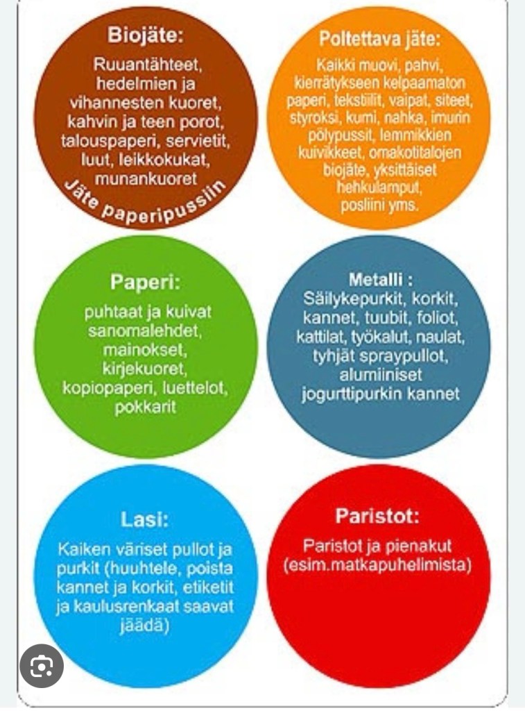 Puhuimme kotitalouden teoriatunnilla jätteiden kierrättämisestä ja ruokahävikin vähentämisestä. Tiesitkö, että tuotamme 400 miljoonaa kiloa eloperäistä talousjätettä eli biojätettä vuodessa? Tai että Espoon Ämmänsuolle kuskataan biojätettä 50 rekka-autollista päivässä? Tai että 70 prosenttia sekajätteestä voitaisiin lajittelulla kierrättää?