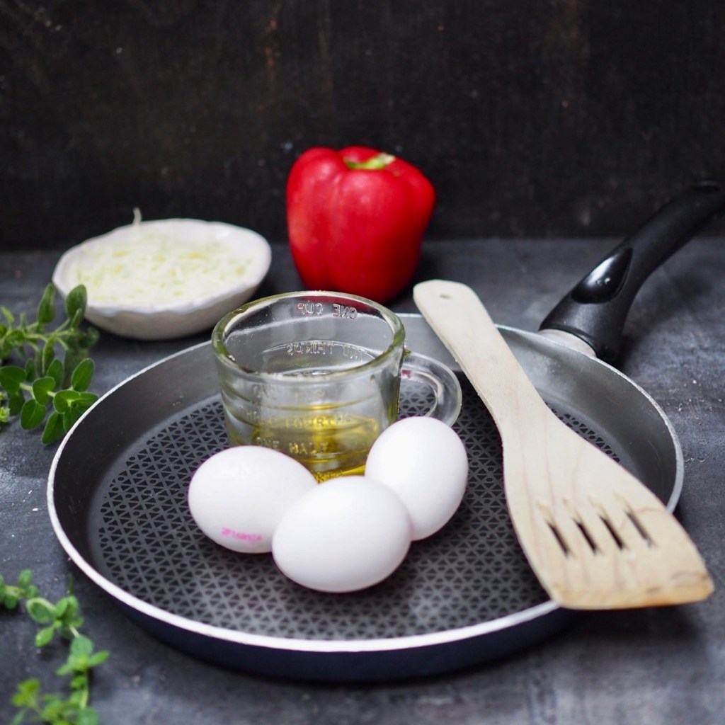 Vuoraa paistovuoka leivinpaperilla niin saat munakkaan nostettua helposti lautaselle. Voitele leivinpaperi pienellä tilkalla öljyä.