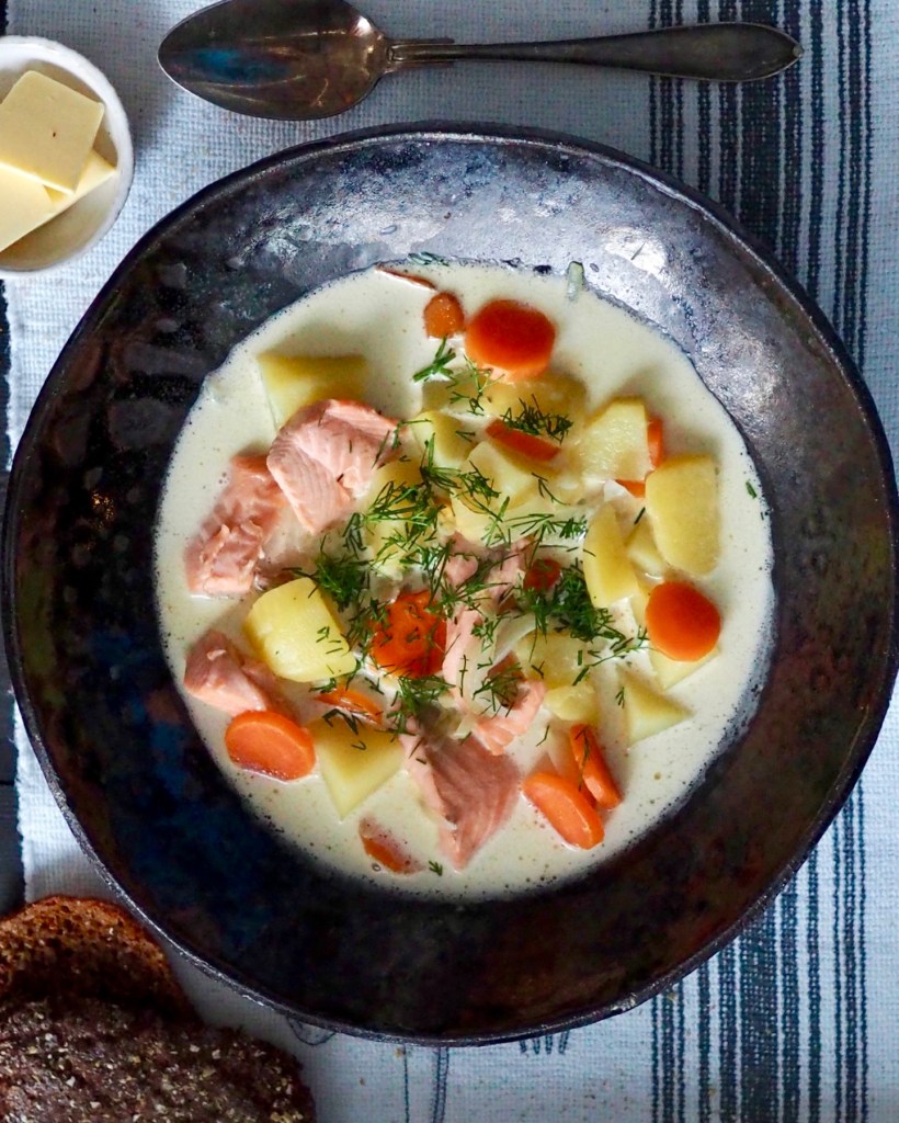 Jos kerman korvaa sulatejuustolla ja raa’an kalan savustetulla lohella, saa herkullisen juustoisen kalakeiton, joka kelpaa vaikka sunnuntailounaalle.