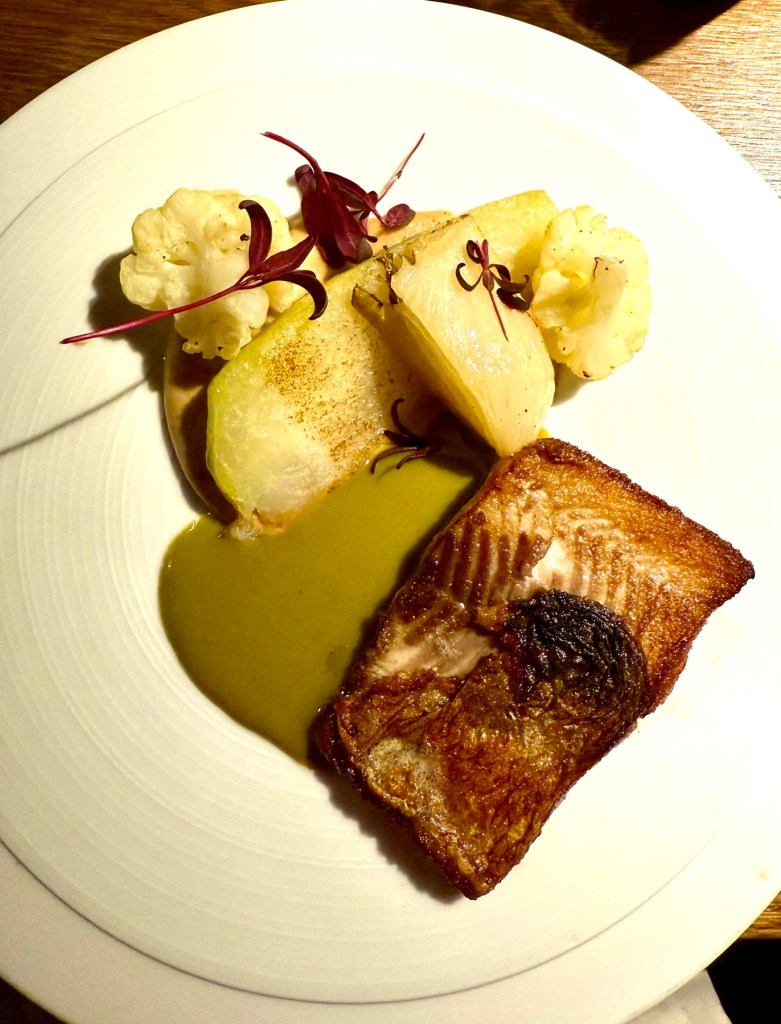 Pääruoka pisti vielä paremmaksi. Päivän kala oli paistettua siikaa, fenkolia ja kukkakaalia kookoskastikkeen kanssa tarjottuna, 29 e. Olin löytäväni kastikkeesta myös thaimaalaisen vihreän curryn mausteita.