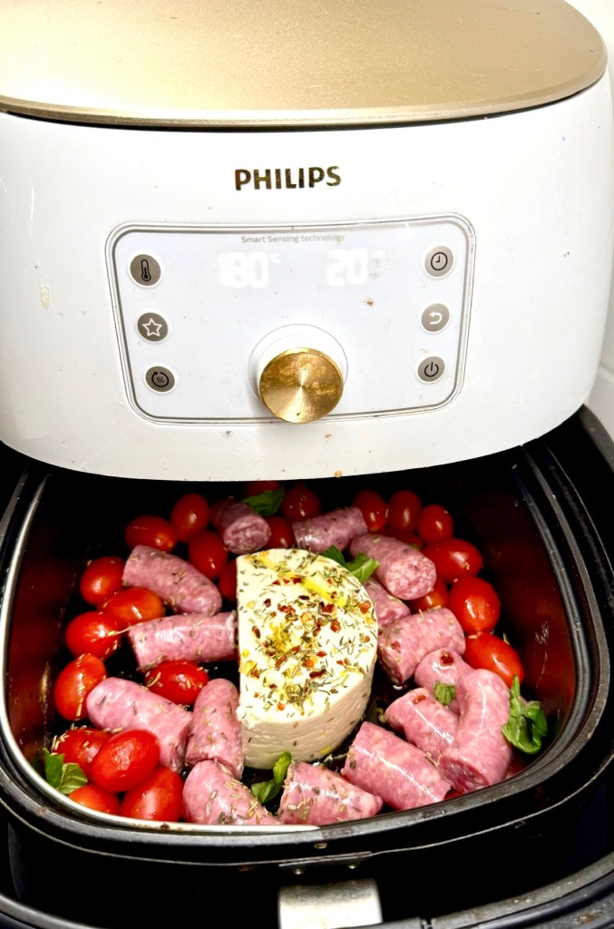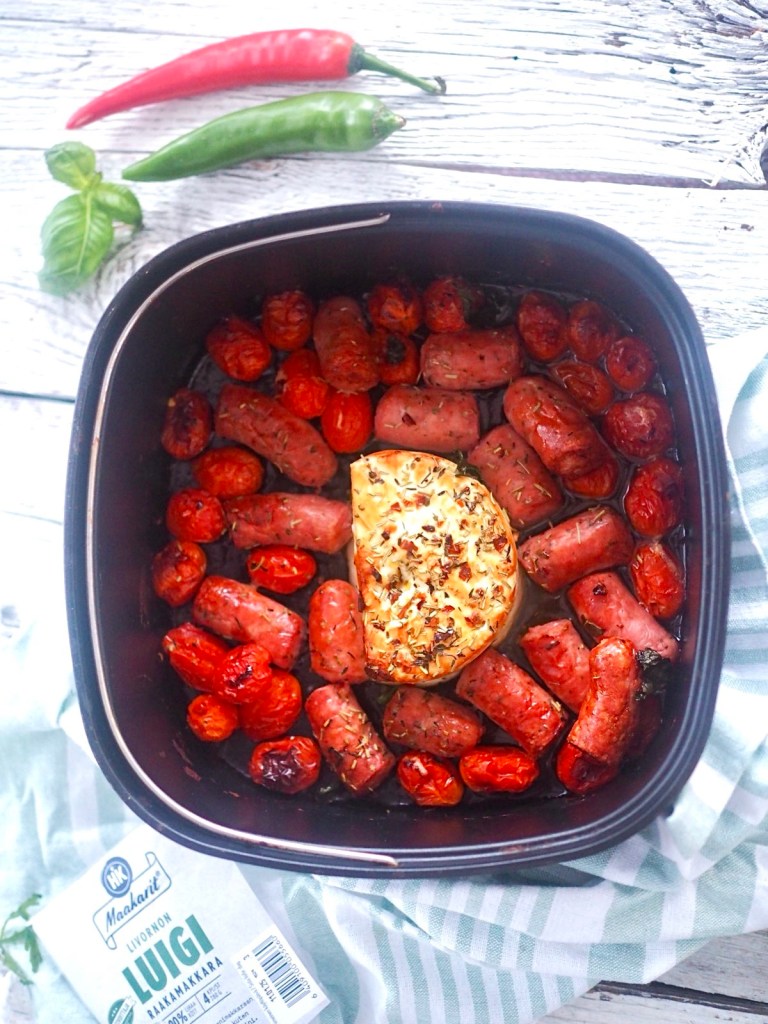 Lounas puolessa tunnissa? Ei ongelmaa. Luigin airfryer-fetapasta syntyi jääkaapissani olleista aineksista.