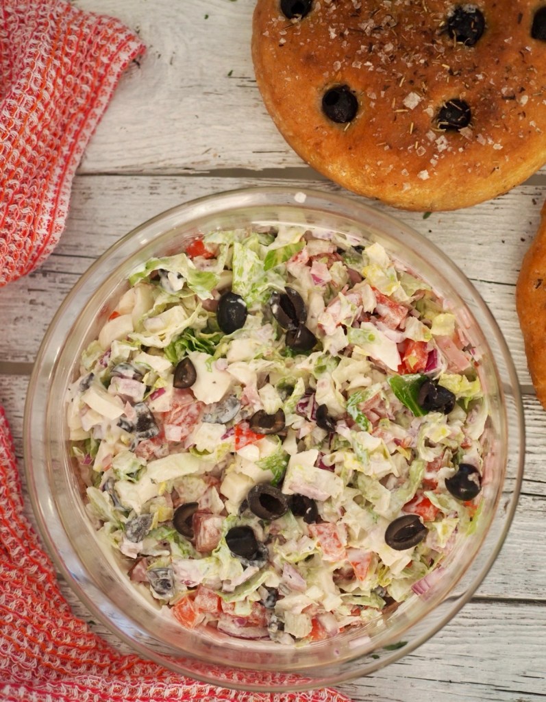 Selatessani TikTokia, vastaani tulivat silputulla salaatilla täytetyt erilaiset leivät. Kurkistin jääkaappiini ja sovelsin ohjetta kotivarani mukaan. Tee sinäkin niin, jos jotain ei ole, jätä se pois tai sovella.