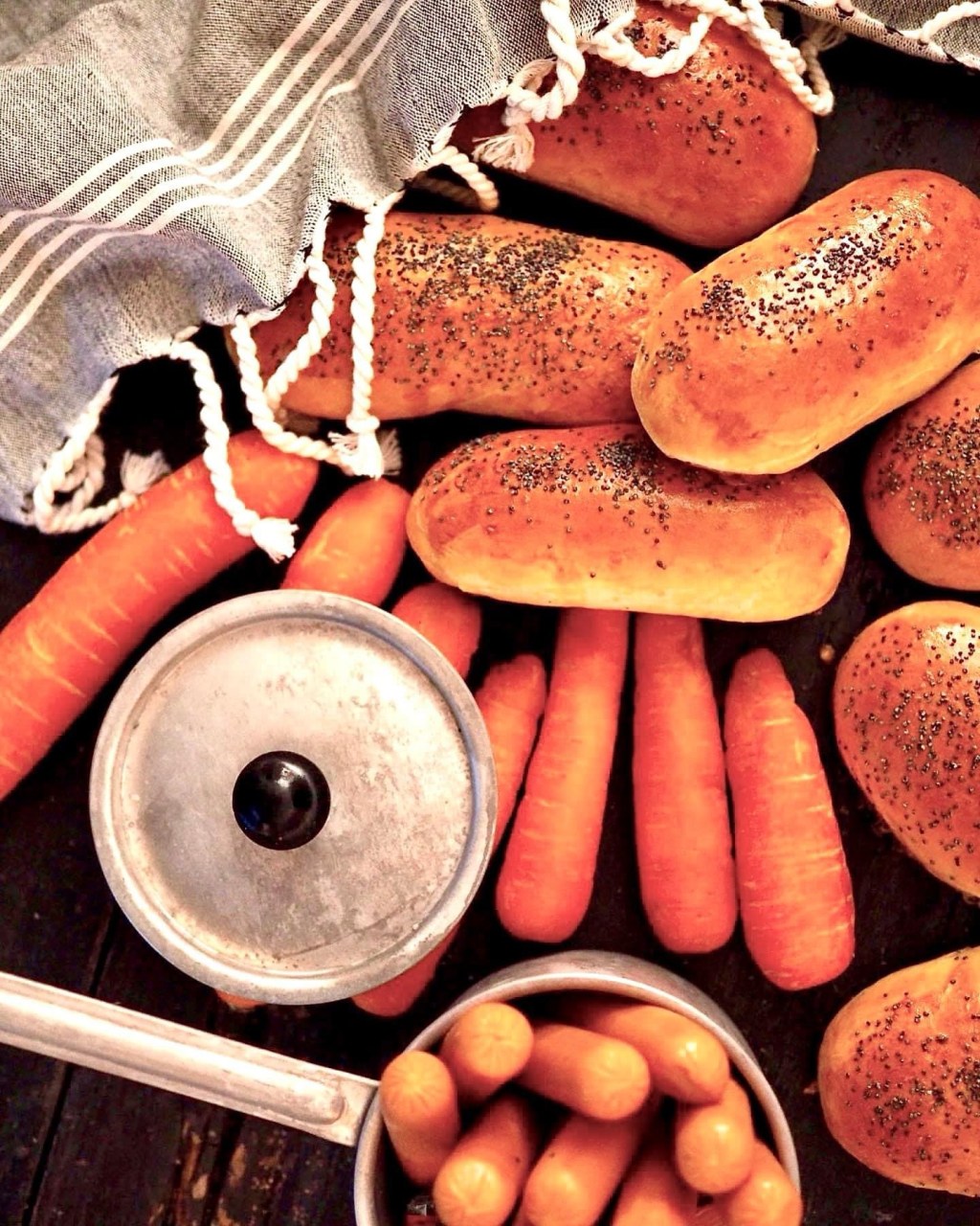 Liuota hiiva kädenlämpöiseen maitoon. Erottele munasta keltuainen. Lisää maitoon porkkanaraaste, suola, hunaja ja keltuainen. Alusta jauhot taikinaan. Vaivaa vähintään 10 minuuttia. Lisää voi vaivaamisen loppuvaiheessa.