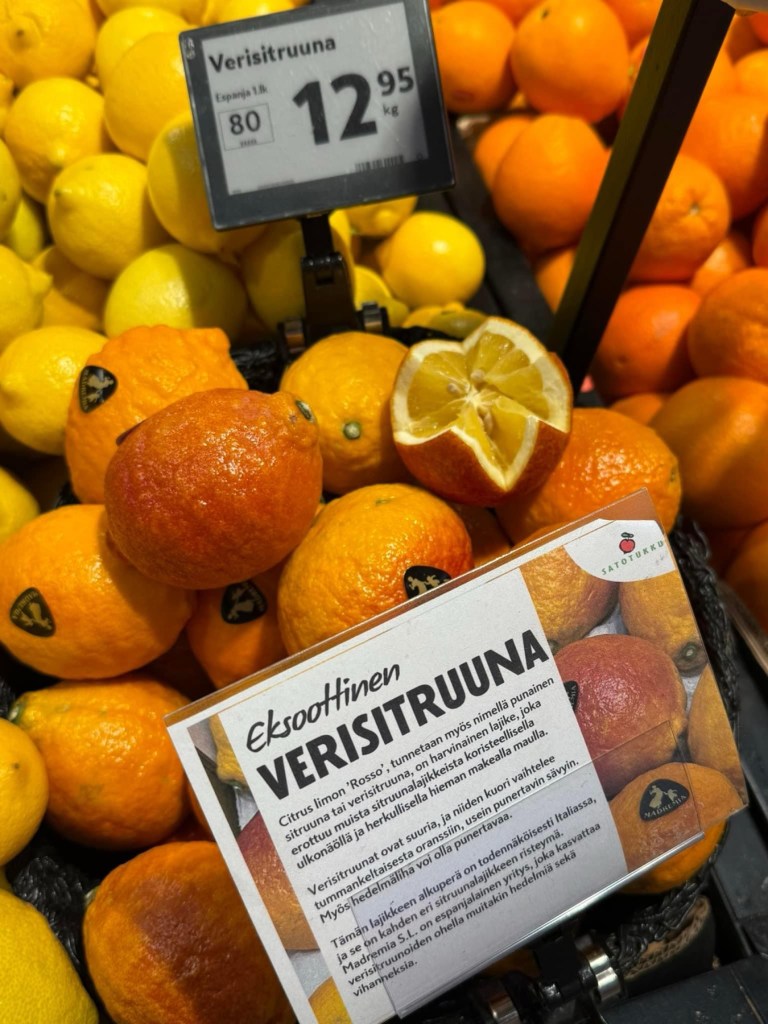 Kauppareissullani törmäsin itselleni uuteen sitrukseen eli verisitruunaan. Avattu sitruuna ei kyllä ollut lainkaan ”verinen”.