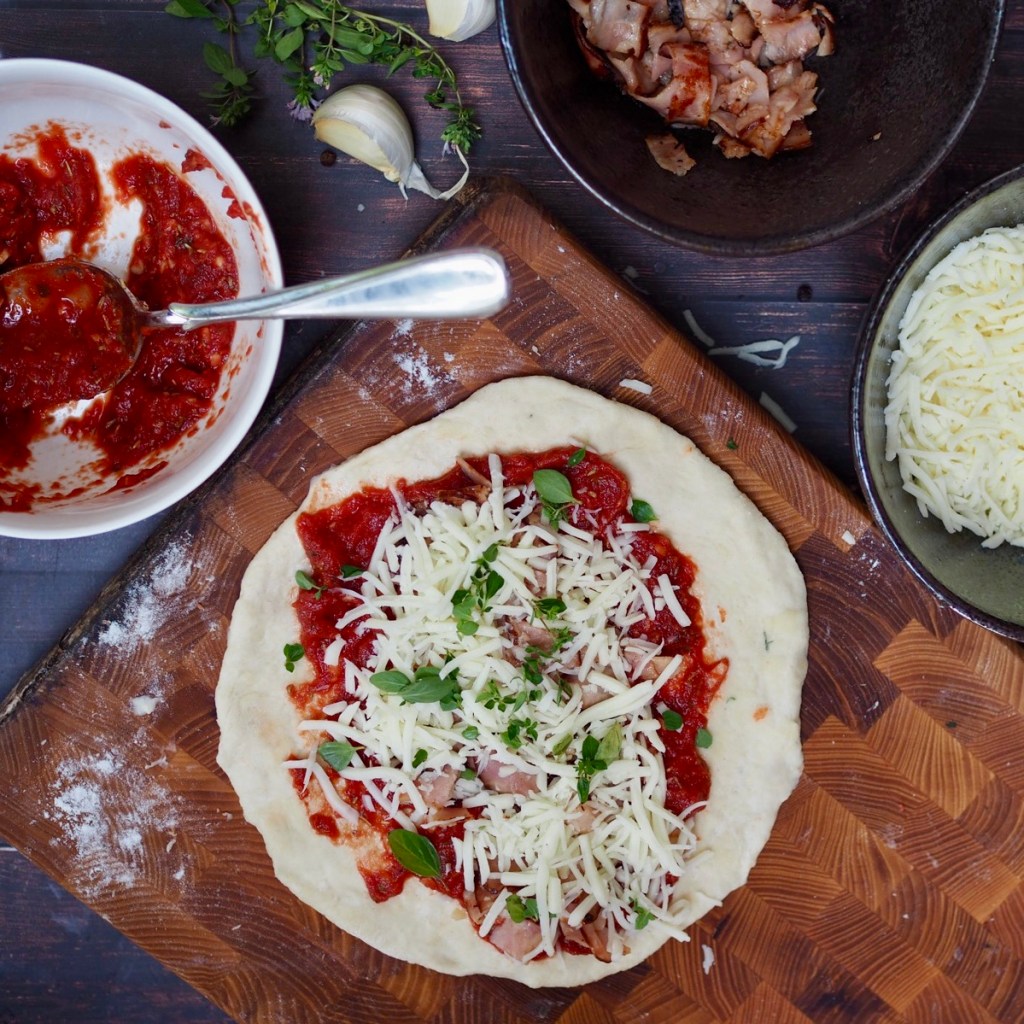 Meillä oli pizzapaja. Jokaisessa keittiössä tehtiin pohjataikina, josta tulee 2 pizzaa sekä tomaattikastike. Kaikilla oli myös desi juustoraastetta.