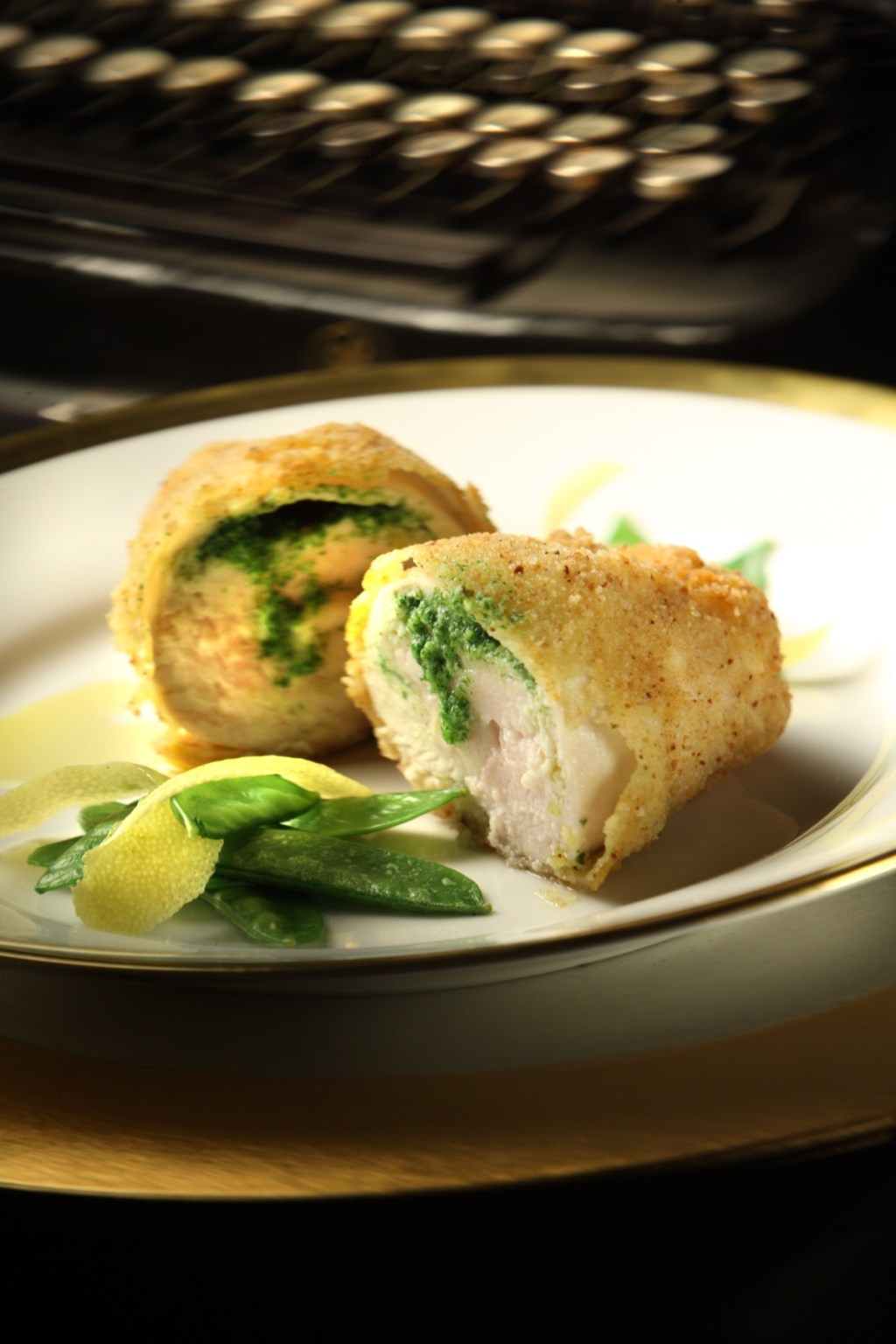 Irrota varovasti broilerin sisäfileet rintapaloista. Leikkaa lihan paksuimpaan kohtaan vinottain ohut viilto ja käännä rintapala auki kuin kirja. Nuiji rintafileet muovikelmun välissä mahdollisimman ohuiksi rikkomatta niitä. Nuiji myös sisäfileet aivan ohuiksi. Mausta rintafileet sitruunamehulla, vastarouhitulla pippurilla ja suolalla. Pane voitanko fileen keskelle ja peitä se sisäfileellä. Kääri kotletti tiukaksi rullaksi ja kiinnitä reunat hammastikuilla.