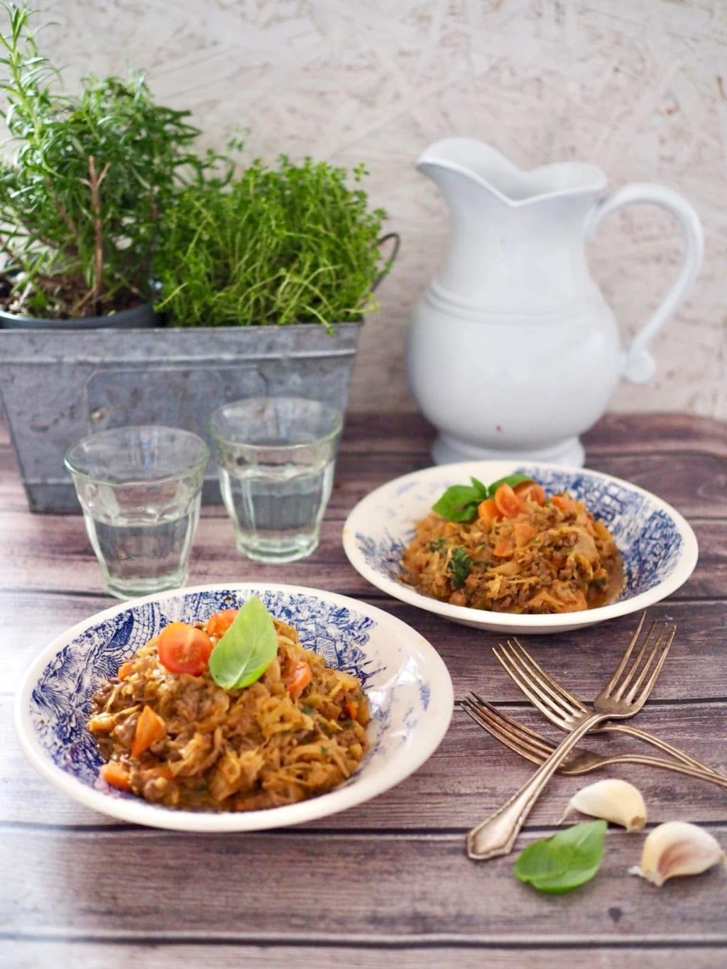 Koristele kaalipata tuoreella basilikalla tai korianterilla.