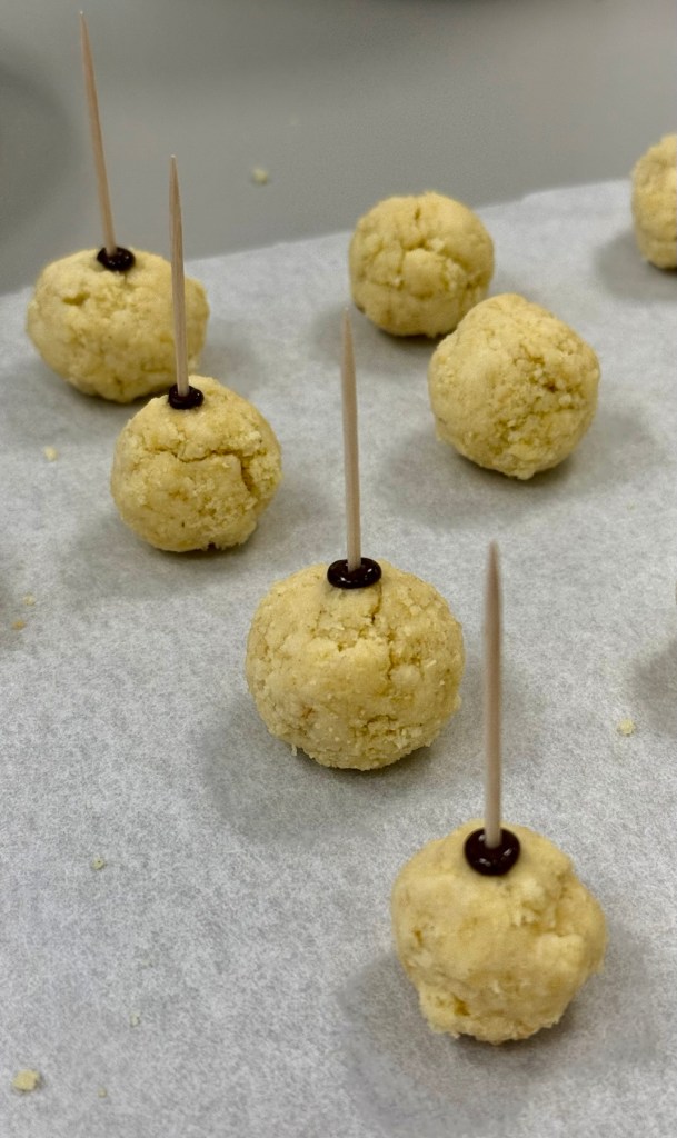 Dippaa ensin tikku sulatetussa suklaassa. Aseta kakkumassapallo tikkuun ja anna jähmettyä hetki. Dippaa tikussa oleva kakkumassapallo sulatettuun suklaaseen ja pyöräytä se kulhossa, jossa on nonparelleja.