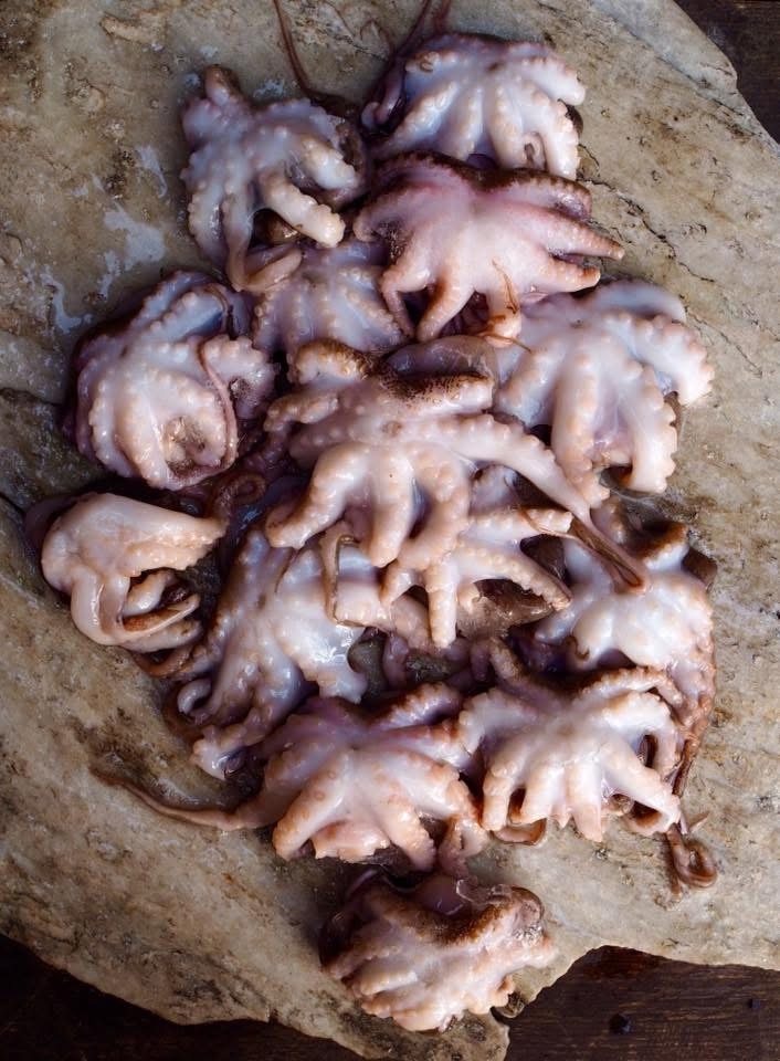 1 pakastettu mustekala (1,5 kg) tai 1 kg pakastettuja pieniä mustekaloja