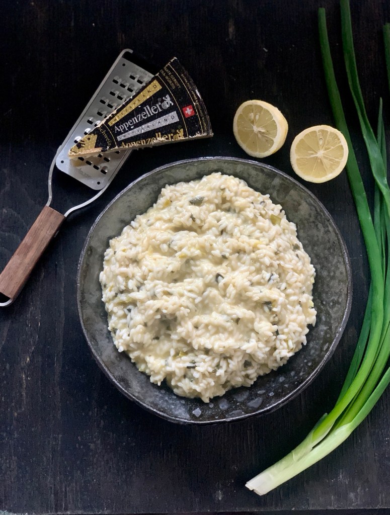 Kuullota sitrus- ja sipulisilput voissa, lisää sokeri ja riisi. Jatka hetki kuullottamista. Lisää kanalientä kauhallinen kerrallaan riisin joukkoon. Anna nesteen imeytyä ennen seuraavan kauhallisen lisäämistä. Sekoita säännöllisesti. Kun rosotto on sopivan al dente, viimeistele ruoka mausteilla, sitruunamehulla ja juustoraasteella. Lisää kermavaahto ja basilikasilppu aivan viimeiseksi.