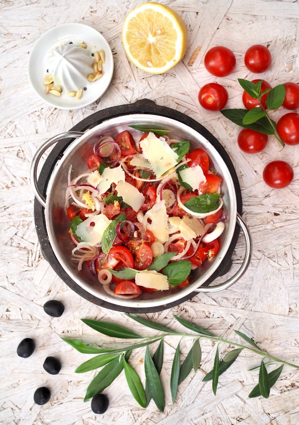 Insalata siciliana on perinteinen salaatti, joka koostuu pääasiassa tuoreista vihanneksista, kuten tomaateista, sipulista, kurkusta, oliiveista ja yrteistä. Salaatti maustetaan oliiviöljyllä, etikalla, suolalla ja pippurilla.