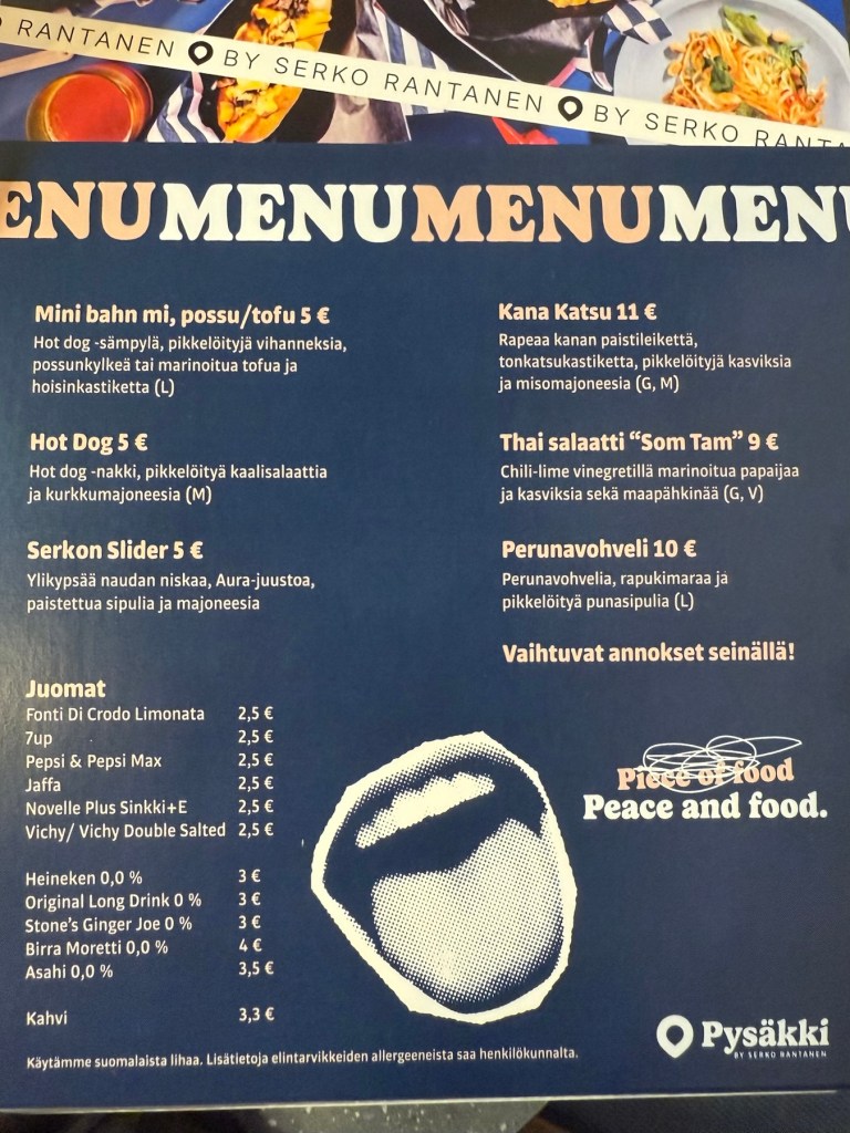 Ravintola tarjoaa katuruokaa yhdistäen aasialaisen fuusiokeittiön, amerikkalaiset diner-klassikot sekä skandinaaviset maut. Ei lähelläkään fine diningia, mutta raikkaita uusia makuja nopeaan näläntyydytykseen tai mukaan otettaviksi.
