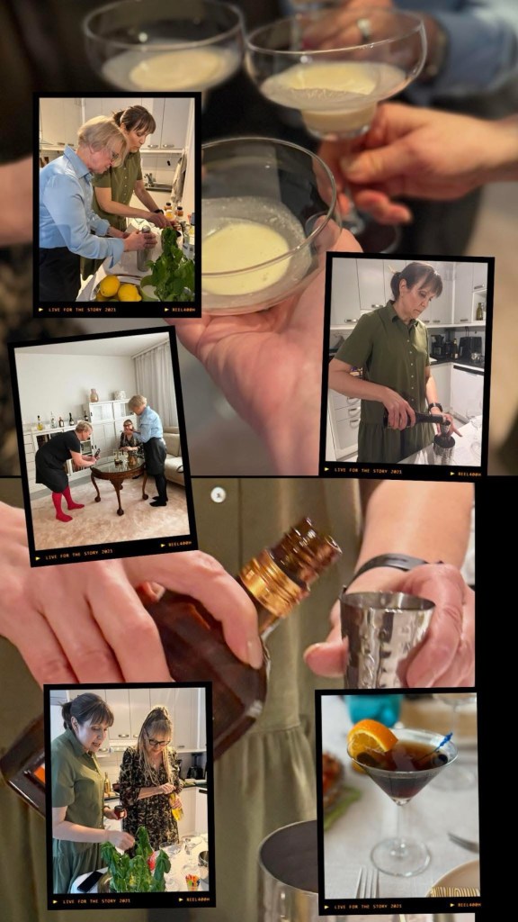 Naisten drinkkikoulu -mikä ihana idea! Ystäväni Heidi Lihr kutsui kotiinsa joukon naisia ja jokainen sai etukäteen ehdottaa tehtävää drinkkiä, jotka toteutimme ja maistelimme illan aikana. Tutustuimme Herkkään, Rommi Souriin, Side Cariin ja Brandy Alexanderiin. Ruokapuoli hoitui cocktailkutsuilla nyyttäreinä.