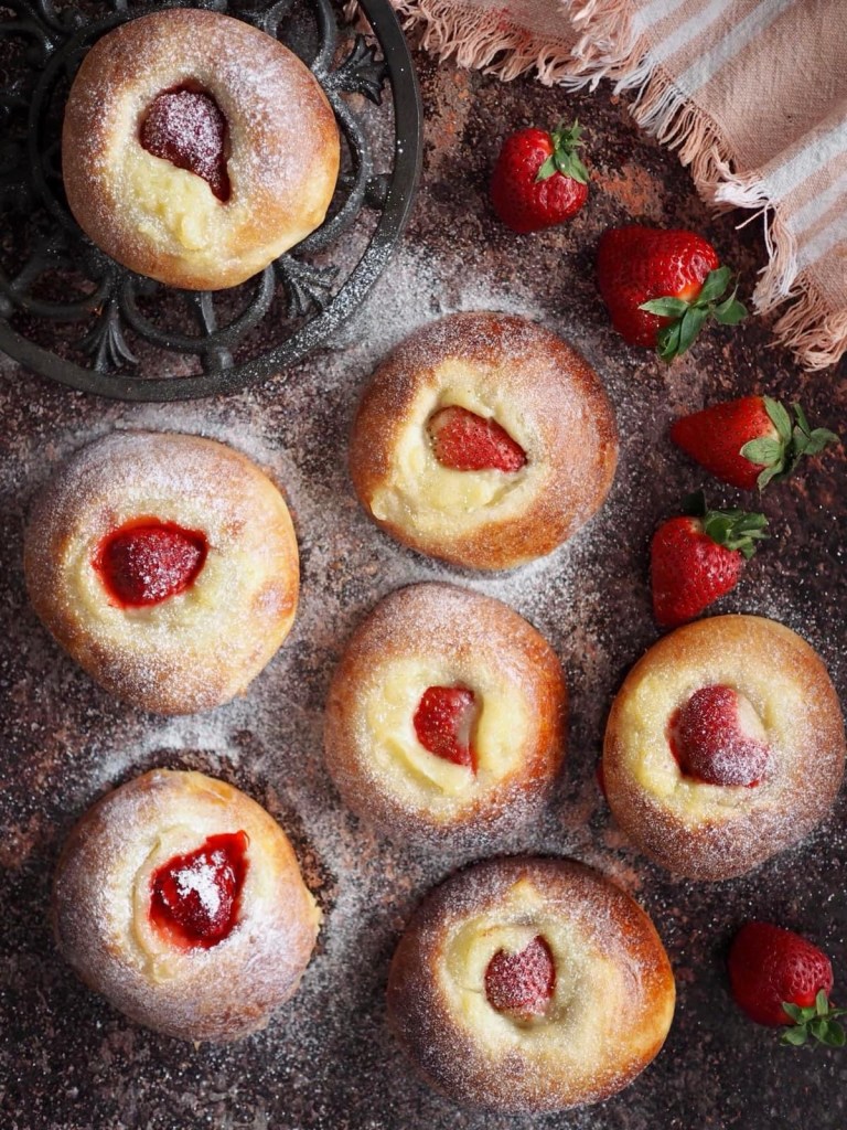 Tarjoa vohvelit kuumina suklaakastikkeen/vaahterasiirapin, kermavaahdon ja viipaloitujen mansikoiden kanssa.