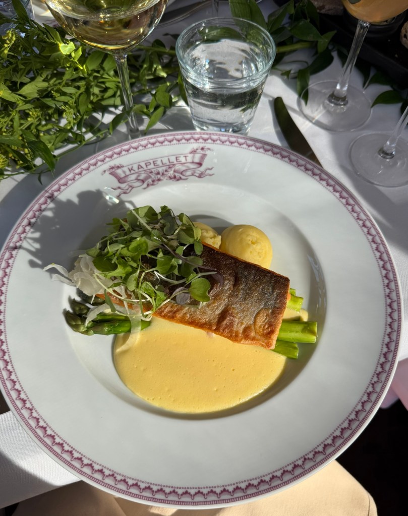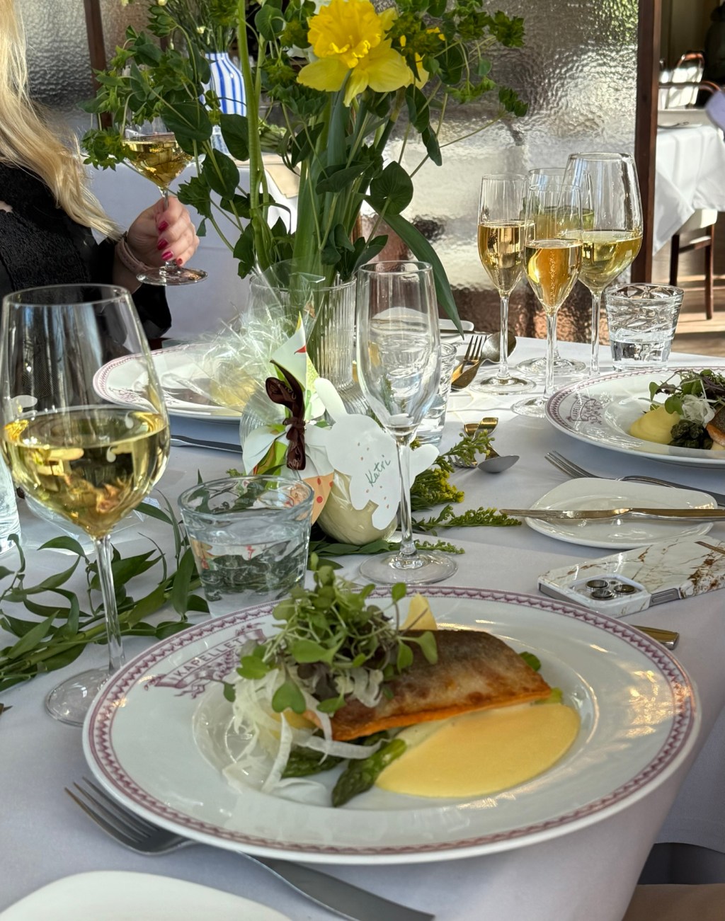 Suosituin tuote on kolmen ruokalajin parsamenu, 69 e, ja alkuruoista eniten kysytään kuohuviinillä höystettyä parsakeittoa, kun taas pääruoista suosituinta on nieriä. Voin sanoa, että parsakeiton lautanen teki mieli nuolla. Niin hyvää se oli.