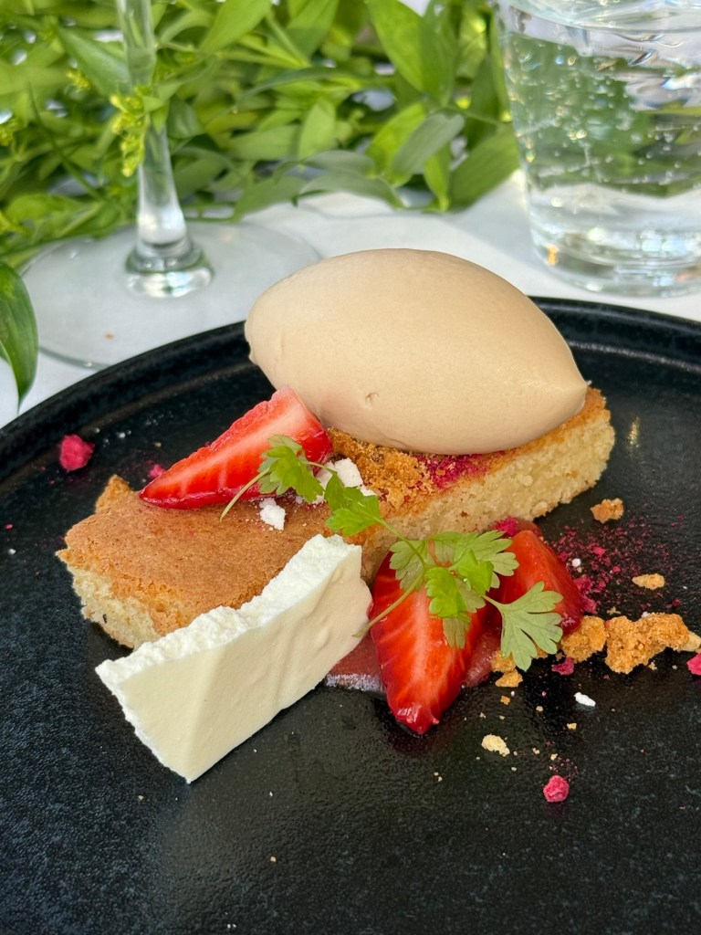 Jälkiruoka kruunasi menun. Raparperijäätelö oikeasti maistui raparperilta. En ole jälkiruokaihmisiä, mutta parsakeittoa ja jälkiruokaa en olisi halunnut missata, Annokset olivat runsaita, joten keitto ja jälkiruoka olisivat olleet minun parsalounaani.