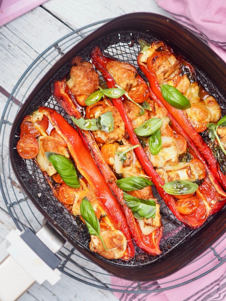 Paahda paprikoita 200 asteisessa airfryerissa 18-20 minuuttia ( Tai 225-asteisessa uunissa noin 25 minuuttia. Jos haluat paprikoihin enemmän paahteisuutta, voit loppuvaiheessa kytkeä päälle uunin grillivastukset.)