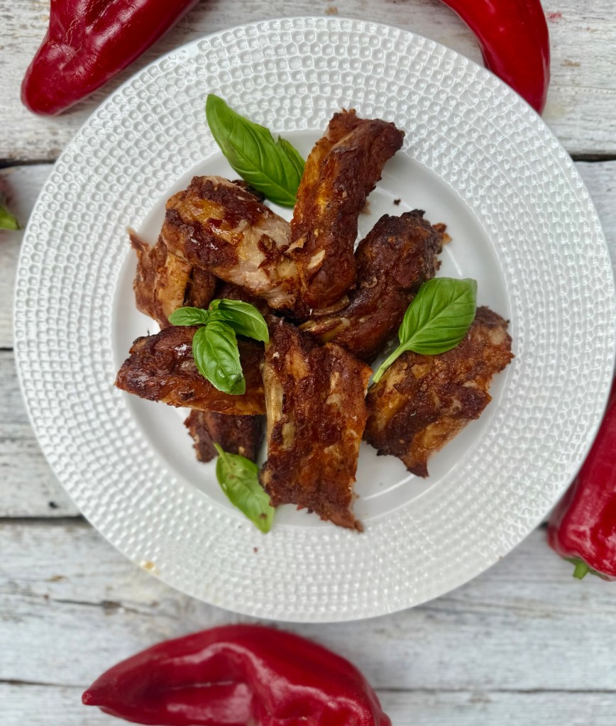 Tarjosin paprikat airfryerissa paahdettujen ribsien kanssa.