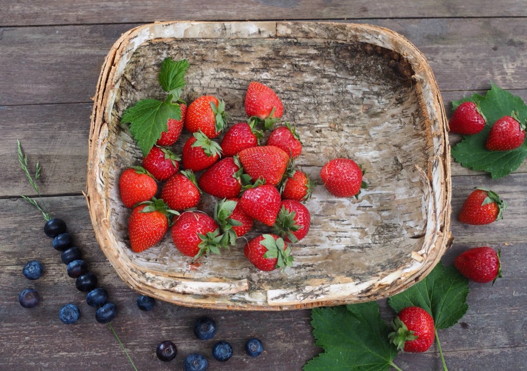Mansikoiden kaverina koristelussa voi käyttää tuoreita yrttejä kuten minttua, sitruunamelissaa tai baslikaa tai syötäviä kukkia.