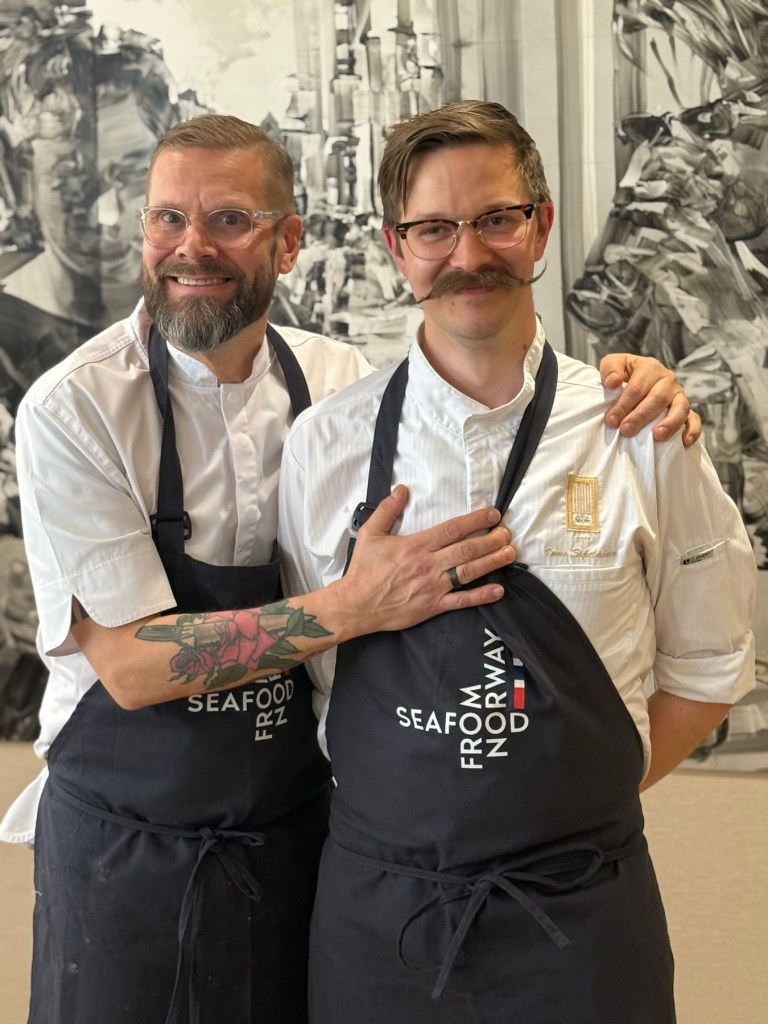 Lehdistölounaan tarjottavasta vastasivat huippukokit Risto Mikkola ja kaksi kertaa Suomea Bocuse’Dor -kisoissa edustanut Ismo Sipeläinen.