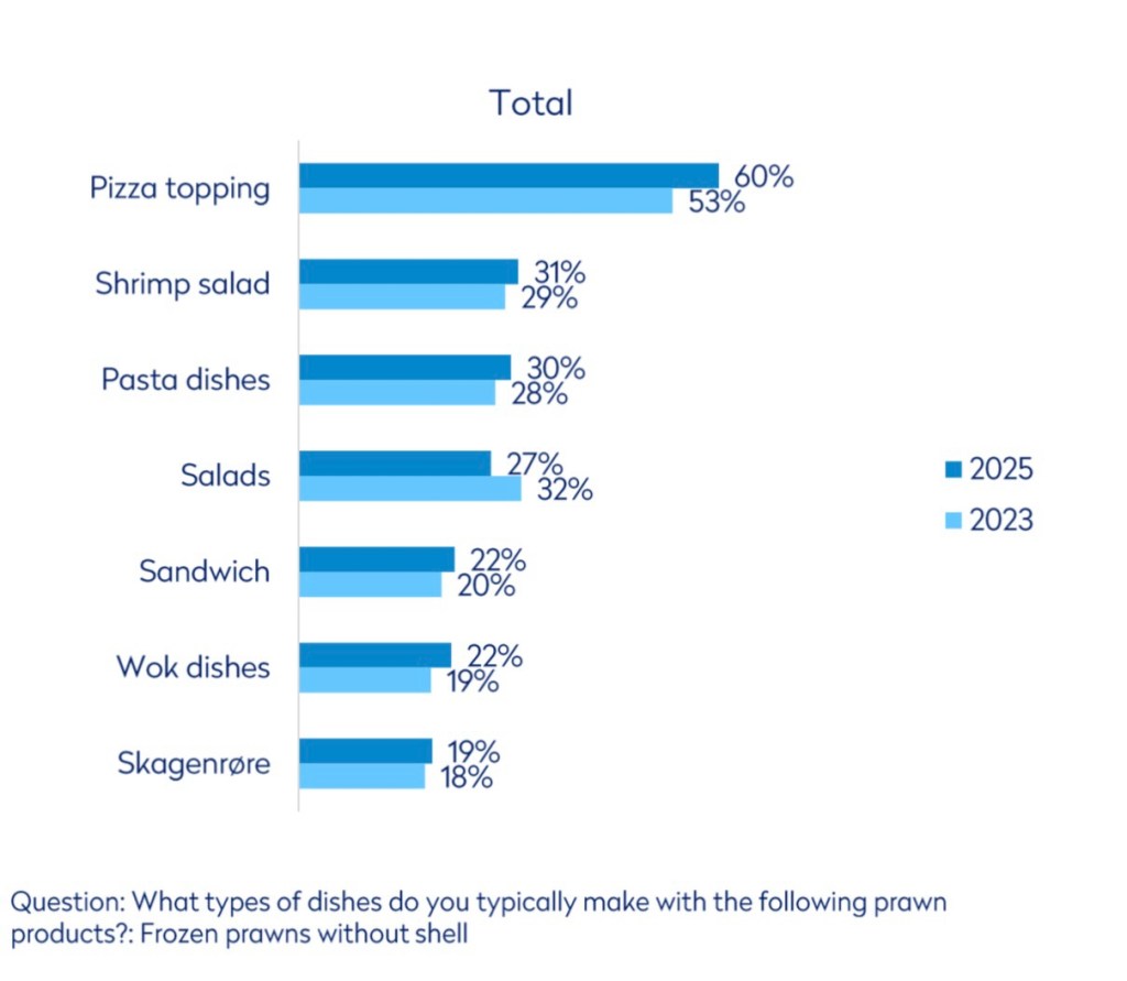 Kuluttajien selvä suosikki on pakastetut, kuoritut katkaravut, joita käyttää jopa 74 % katkarapuostajista. Yleisin käyttötarkoitus on edelleen pizzan täytteenä, heti kintereilla tulevat katkarapusalaatti, pastaruoat, voileivät, vokit ja skagen.