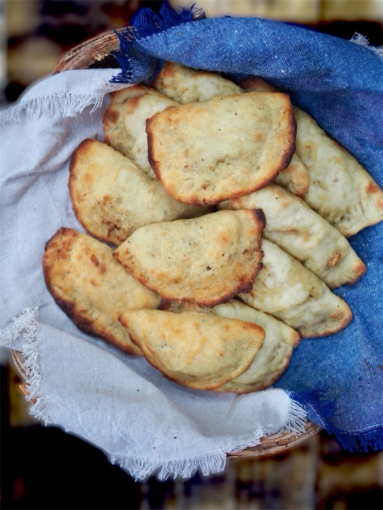 Ripottele loput taikinasta mustikkatäytteen päälle.