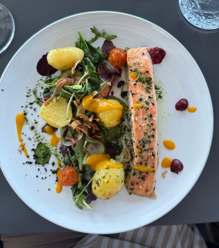 Nettisivujen mukaan ”TV-tornin ravintola tarjoaa kansainvälisen menun, jossa kansainväliset maut kohtaavat modernin kulinaarisen taiteen.” Söimme tornissa maukkaan lounaan.