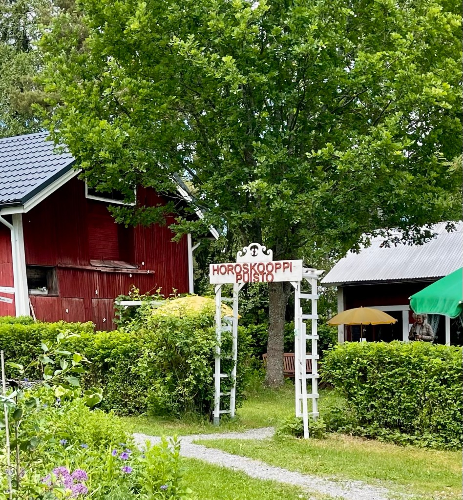 Huvila Härässä voit myös teettää astrologisen analyysin ja osallistua elämykselliselle puistokierrokselle. Kahvila on avoinna huhtikuusta syyskuuhun.