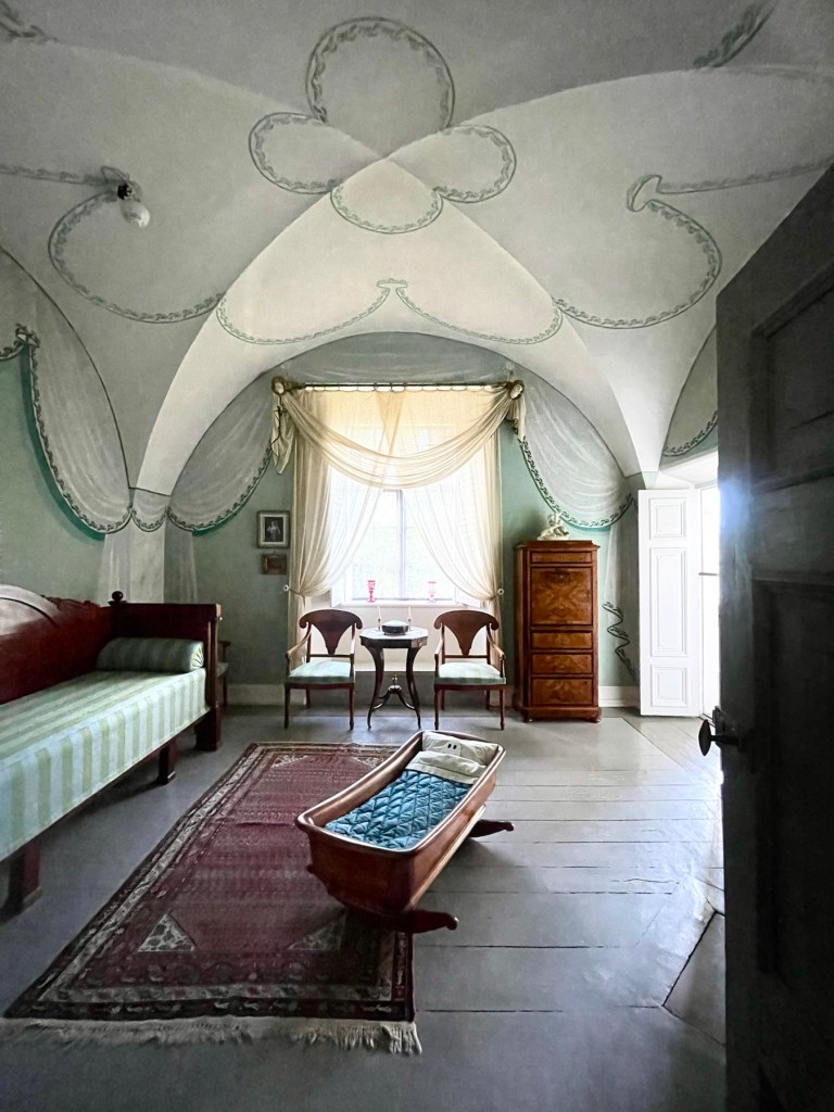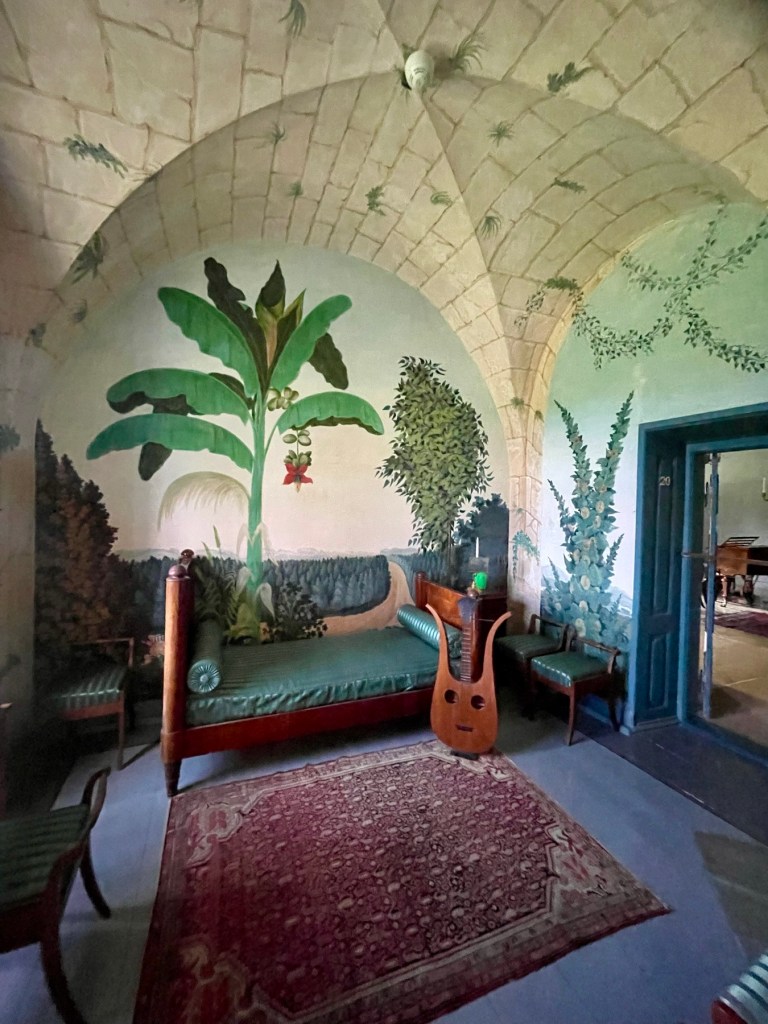 ovat 1830-luvulta. Seinämaalauksen innoittajana ovat saattaneet olla ranskalaiset 1800-luvun alun painetut maisema-aiheiset paperitapetit, joissa usein kuvattiin eksoottisia kohteita.