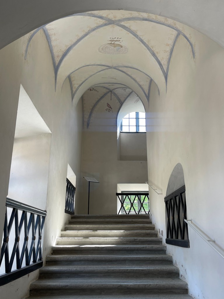 Kellarit koostuvat kolmesta avarasta huoneesta tiilipilarien tukemana ja pienestä tynnyriholvatusta kellarista, johon pääsee leveän porraskäytävän kautta. Kierreportaikko johtaa alakerroksesta aina III kerrokseen asti.