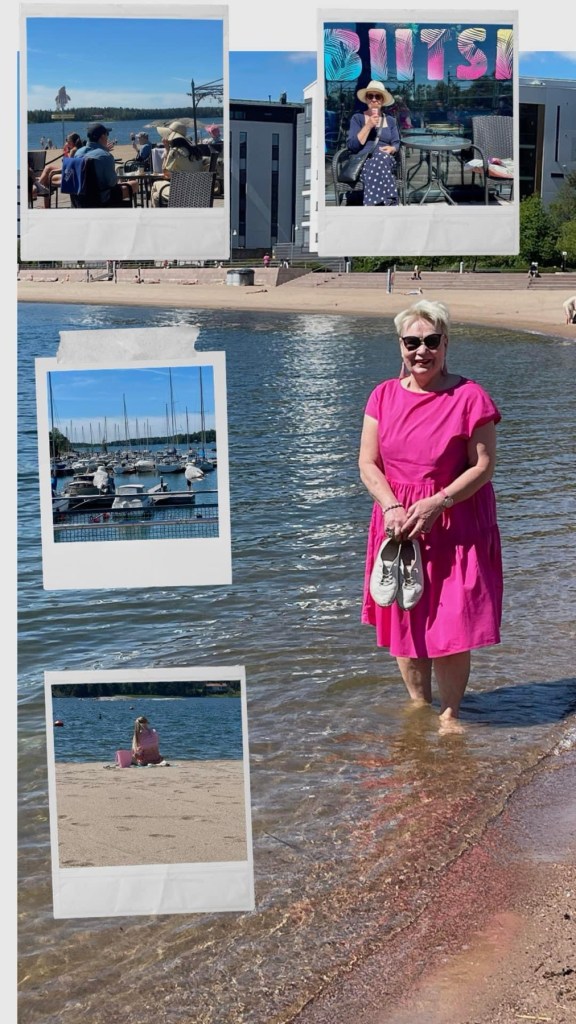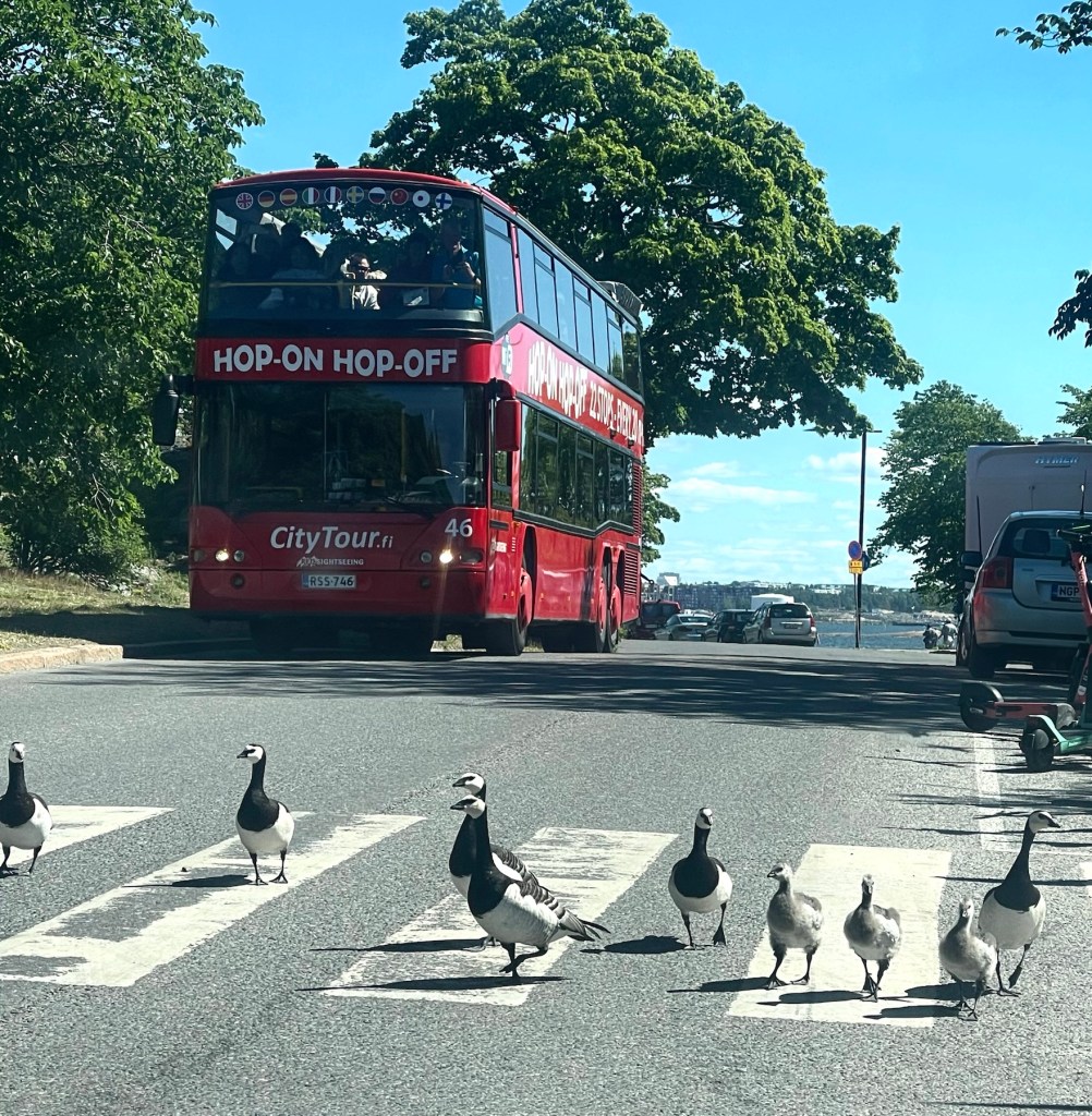 Kirjauduttuamme ulos hotellista, hyppäsimme autoon ja lähdimme kruisailemaan merenrantoja pitkin. Kävimme Löylyssä, ihmettelimme valkoposkihanhia Kaivopuistossa ja päädyimme lopuksi Aurinkolahden rannalle jäätelölle. Kuin etelässä olisi ollut.