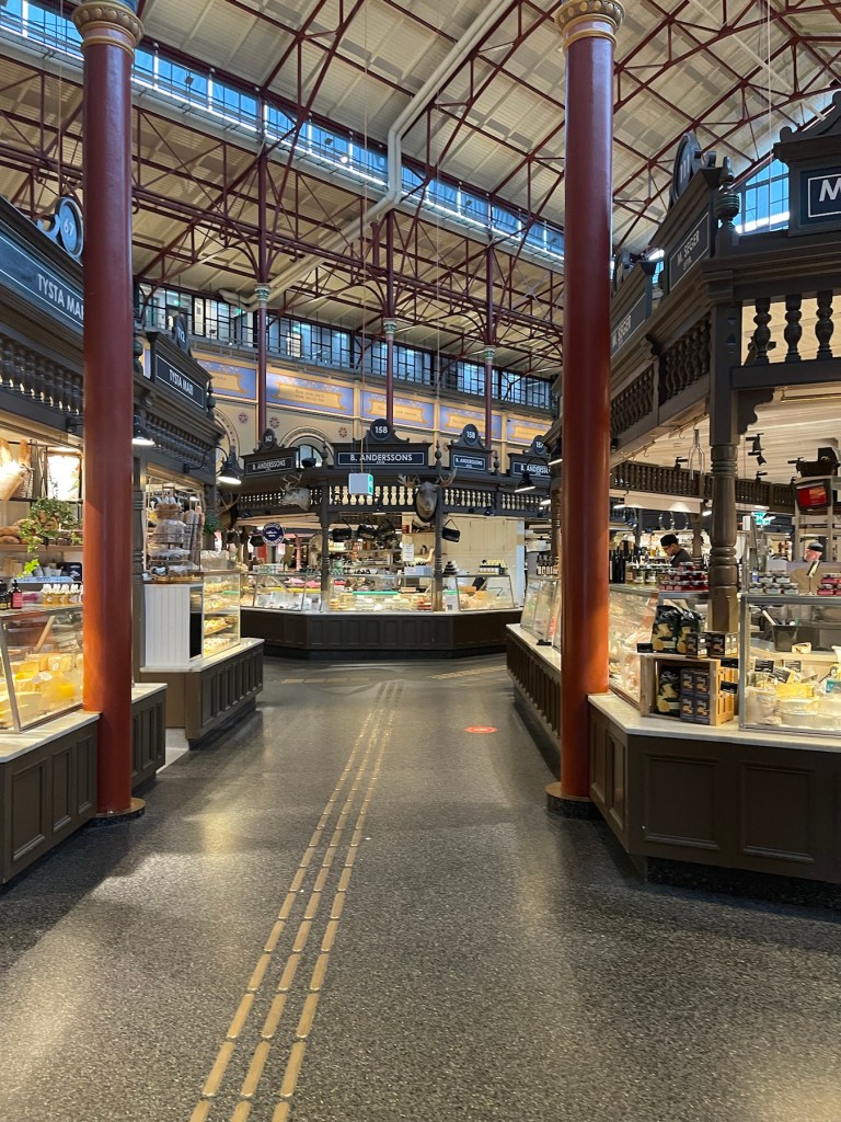 Östermalmshallen oli tietty pääkohteemme. Kauppahallien klassikko, vuonna 1888 rakennettu Östermalmin kauppahalli avattiin uudelleen mittavan peruskorjauksen jälkeen keväällä 2020.