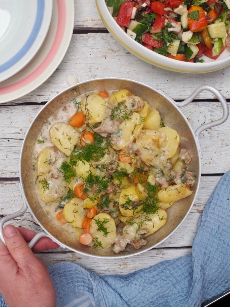 Tilliliha on aina kuulunut lempiruokieni joukkoon, sillä olen hapanimelien kastikkeiden ystävä. Tilliliha on minusta parasta kesällä kun varhaisperunat ovat parhaimmillaan. Mietin tätä inhokkidilemaa ja valmistinkin ruoan karitsan jauhelihasta. (Voit luonnollisesti tehdä sen myös naudanjauhelihasta.) Keittolihojen saamisessa kun on usein haasteita. Karitsan jauhelihasta tehtynä ei nirsoinkaan voi sanoa, että liha ei ole mureaa. Lisäksi ruoka valmistuu samassa ajassa kuin perunat kiehuvat.