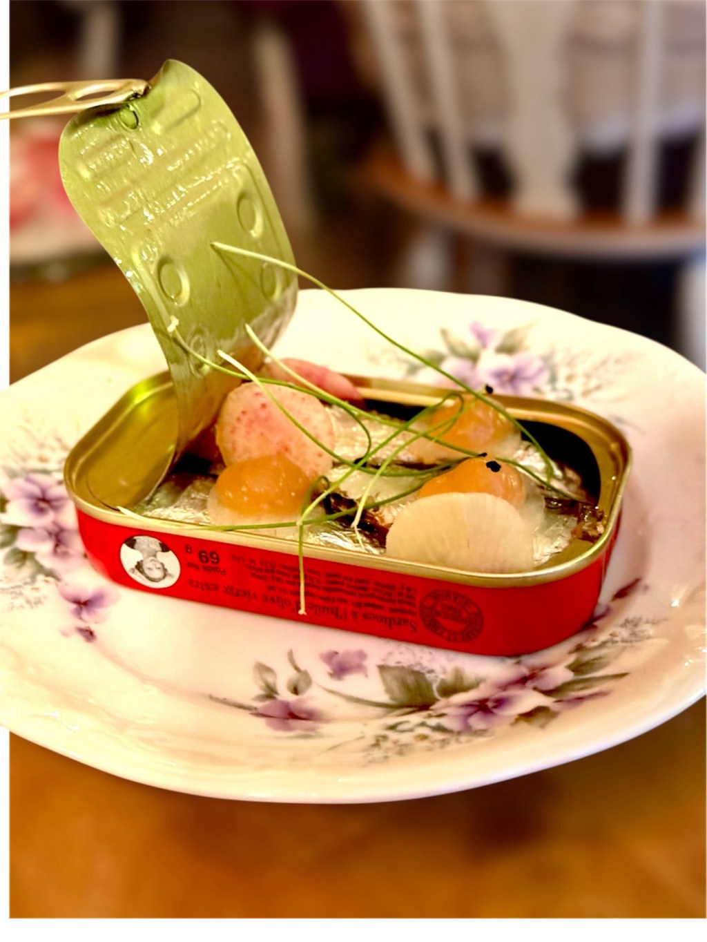 Olen syönyt kevään 2025 aikana kolmessa ravintolassa, jossa alkupala tarjottiin säilykepurkista, tosin tuunattuna.