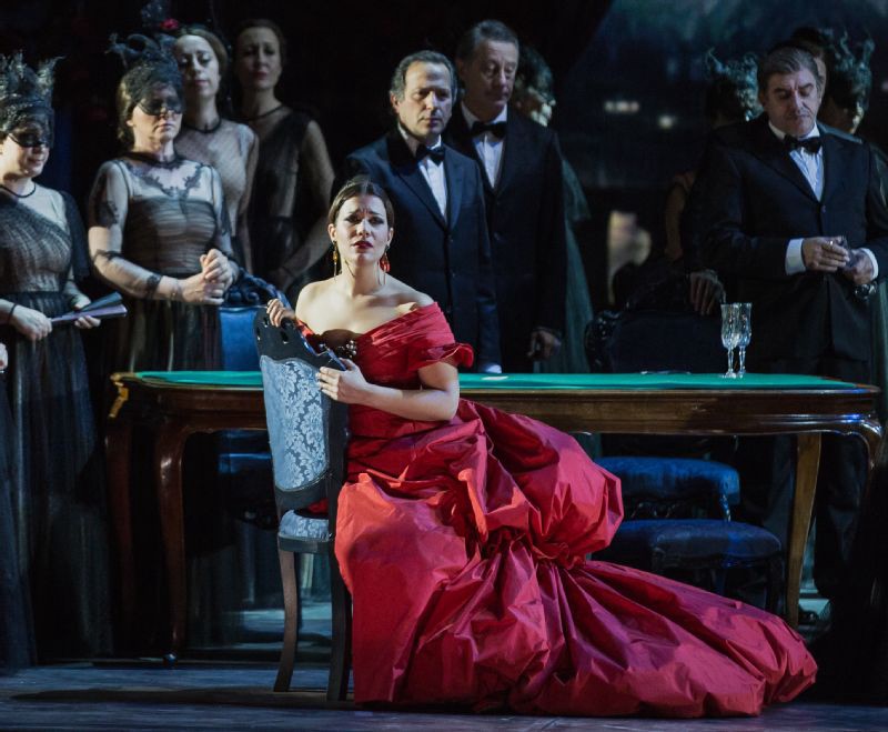 Francesca Dotto Violettan roolissa La Traviata -oopperassa vuonna 2017 yllään Valentinon puku. Kuvat Teatro dell’Opera di Roma