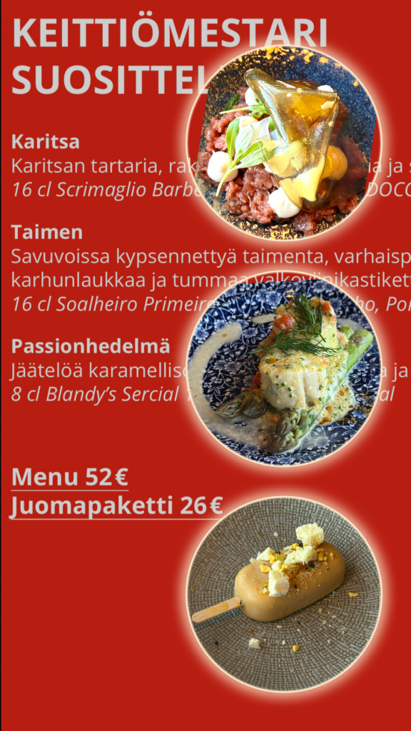 Tällä teissulla tutustuimme laivan uudistuneeseen buffaan. 25. kesäkuuta asti on tarjolla vielä Kevätbuffa, mutta se muuttuu Kesäbuffaksi juhannuksen jälkeen. Vuodenaikojen mukaan vaihtuvien ruokalajien perusta on pohjoismainen keittiö. Buffetin hinta on 44,50/48,50 euroa. Kun varaat ja maksat ateriasi etukäteen, saat ne edullisemmin kuin laivalta, ja varmistat samalla paikan ravintolassa. Hintaan sisältyvät alkuruoat, lämpimät ruoat ja jälkiruoat sekä olut, viini, virvoitusjuomat ja kahvi/tee.