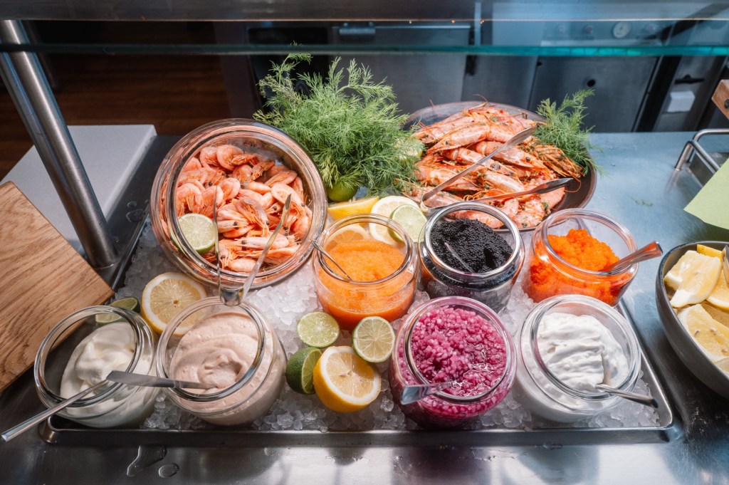 Buffetpöydästä löytyvät merelliset klassikot, kuten katkaravut, kylmät kalaruoat sekä herkulliset liharuoat. Viikkari on erityisen ylpeä kattavasta kasvisruokavalikoimasta, josta osa on vegaanisia ja joita suositellaan lämpimästi myös sekaaneille.