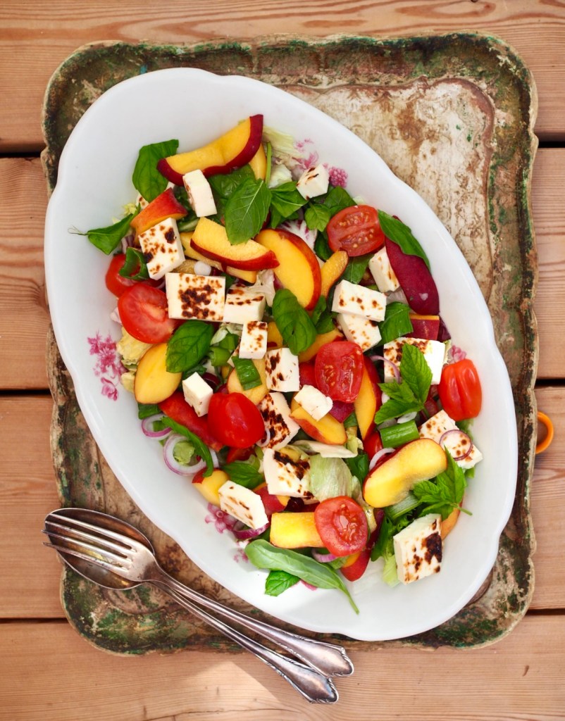 Ystäväni soitti ja kysyi olenko kotona, jos hän tulee koirien kanssa piipahtamaan terassillani. Lupasin tarjota hänelle salaattilounaan, jonka alkupala oli netistä bongaamani burrata-ohje. Molemmat meistä ihastui tähän raikkaaseen alkupalaan ikihyviksi. Eli se meni ns. jatkoon.