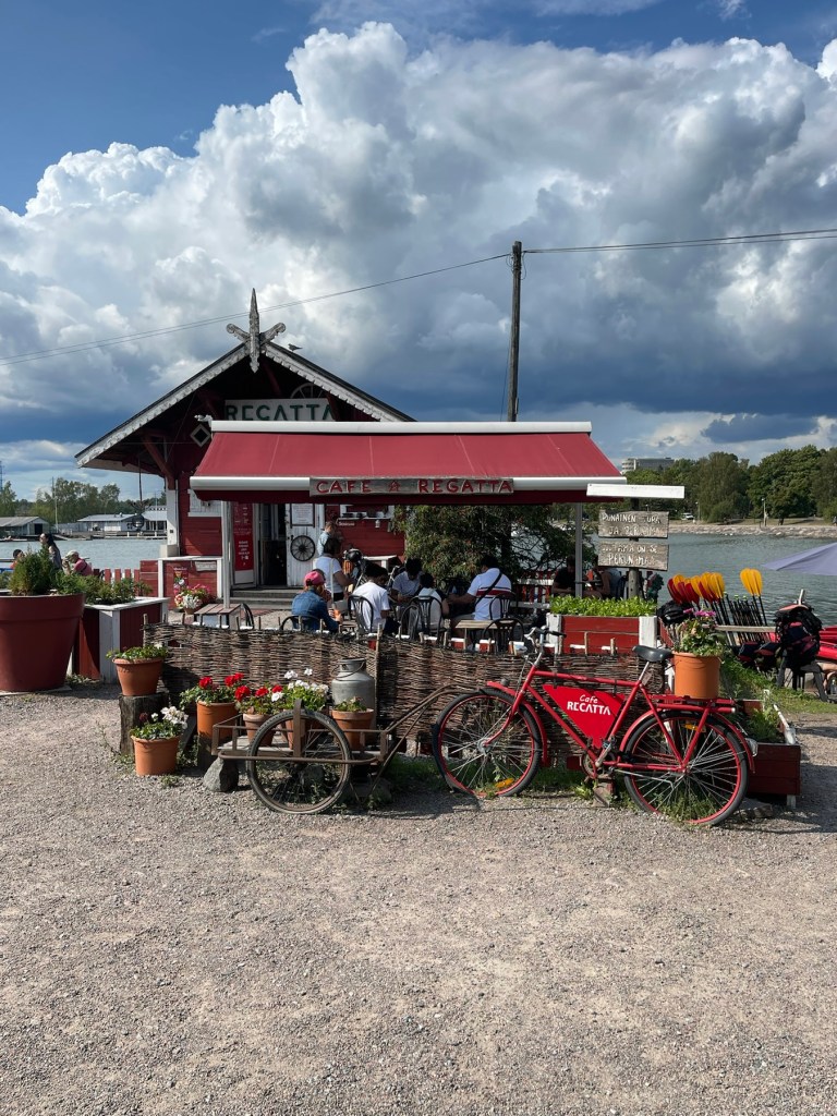 Vanhoilla tavaroilla ja huonekaluilla sisustettu punainen pieni ulkoilmakahvila on jo klassikko. Uunituoretta korvapuustia ja maalaisromanttista tunnelmaa ympäi vuoden. Pihalla on myös mahdollista paistaa kahvilasta ostettua makkaraa avotulella. Regattaan ovat tervetulleita myös lemmikit.