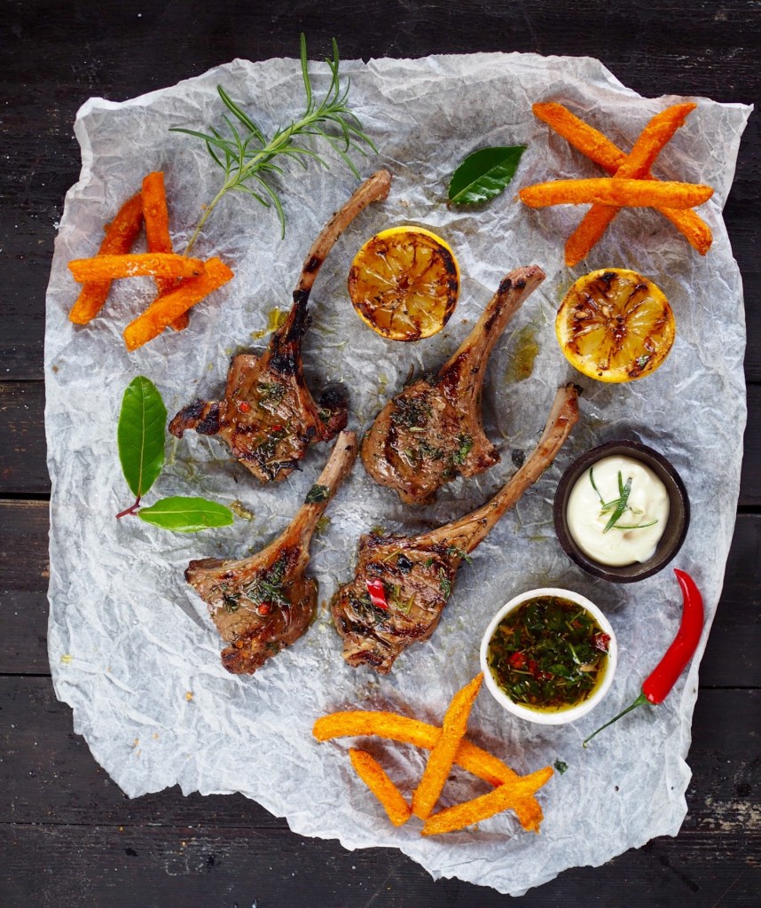 Grillatut karitsankyljykset ja chimichurri-kastike