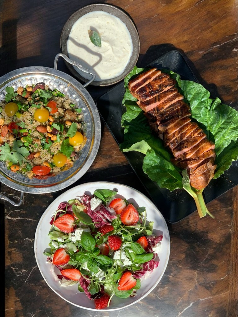 Savustettua ankanrintaa ja kesäisiä salaatteja