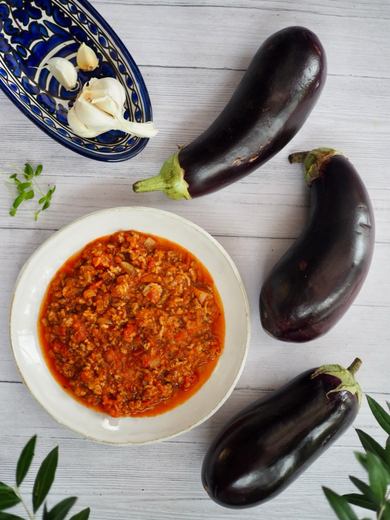 En oikein osannut päättää teenkö mousakaa vai lasagnea, joten keittiössäni syntyi niiden hybridi. Helpotin tekovaiheita jättämällä valkokastikkeen pois ja käytin ruokaan mozzarellaa. Yhtä hyvin voisi käyttää saman verran fetaa. Munakoisosta irtoaa riittävästi kosteutta, jotta pastalevyt kypsyvät!