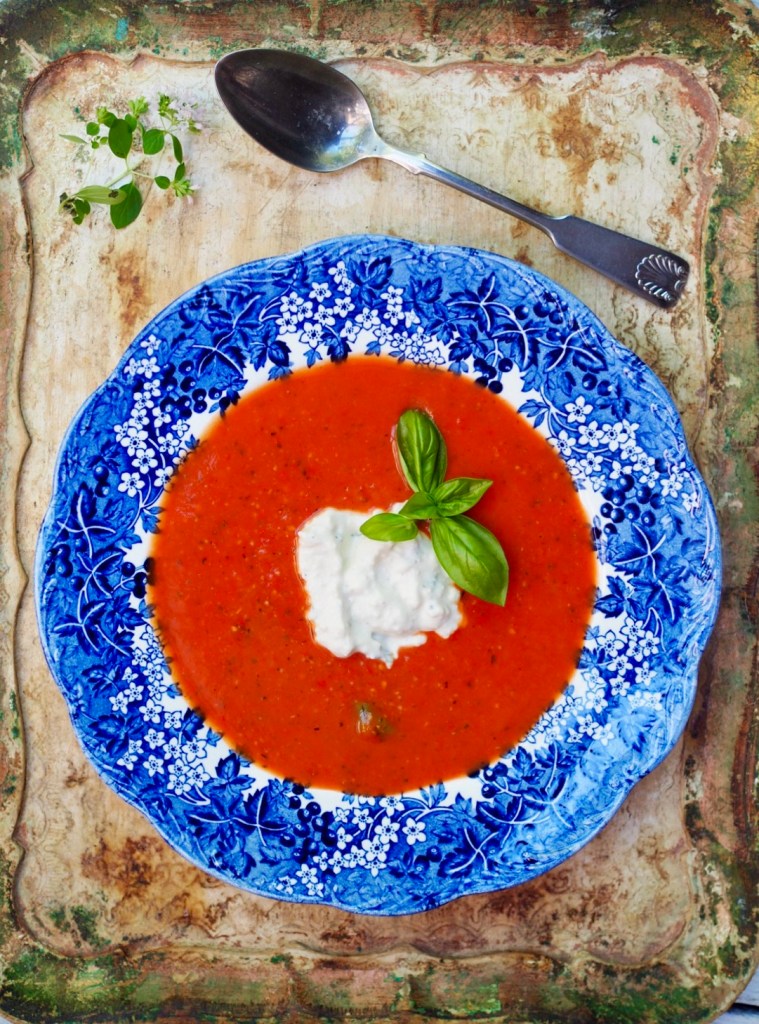 Tätä gazpachoa ystäväni ja ruokatoimittajakollegani toi mukanaan rapujuhliimme. Väitän, että se oli paras koskaan maistamani gazpacho. Alkuperäinen ohje on julkaistu Maaseudun tulevaisuudessa, mutta tällä kertaa Marita oli paahtanut keittoon myös paprikat, joka teki keitosta huomattavasti pehmeämmän ja täyteläisemmän makuisen.